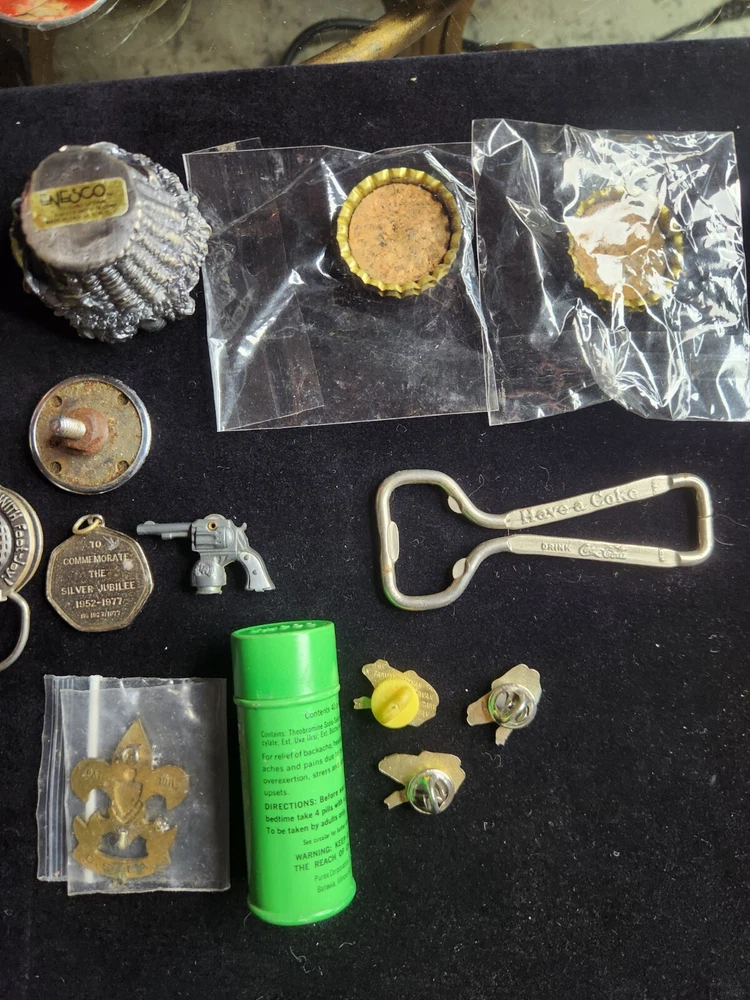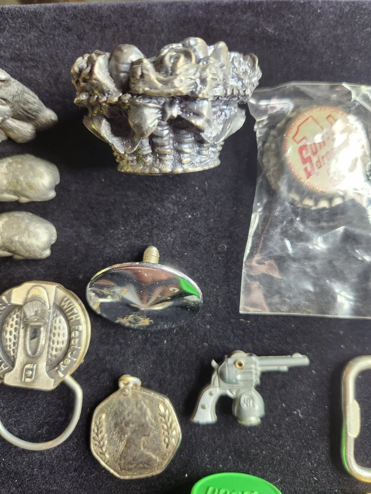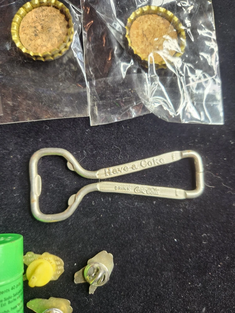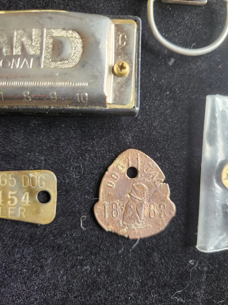 Vintage Junk Drawer Lot Of 20 - 1883 Dog Tag - Hohner - BSA - Coca Cola - ETC