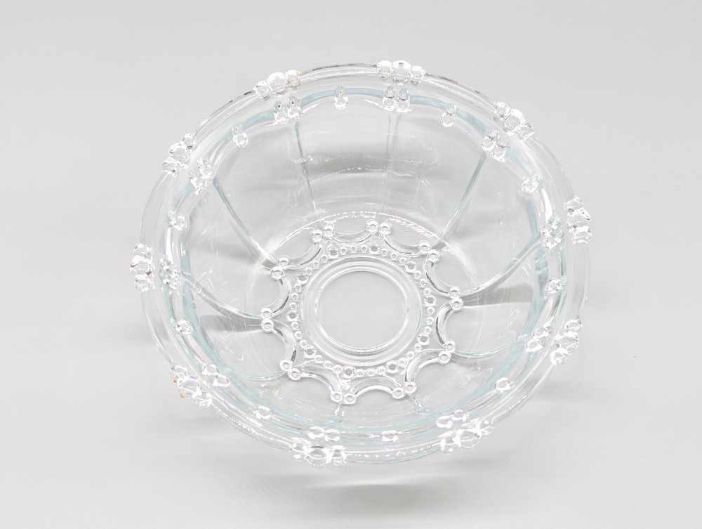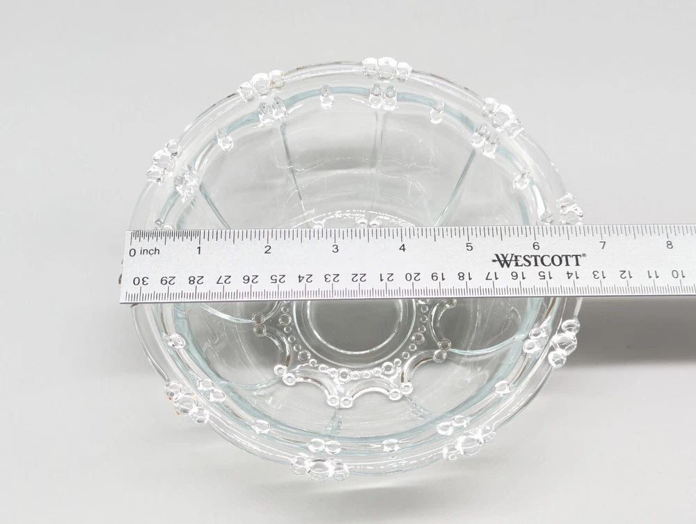 Vintage KIG Indonesia Beaded Clear Glass Elegant Candy Dish Bowl 7" No Lid Measurements - 7" x 2.5" - Weight 1 lb