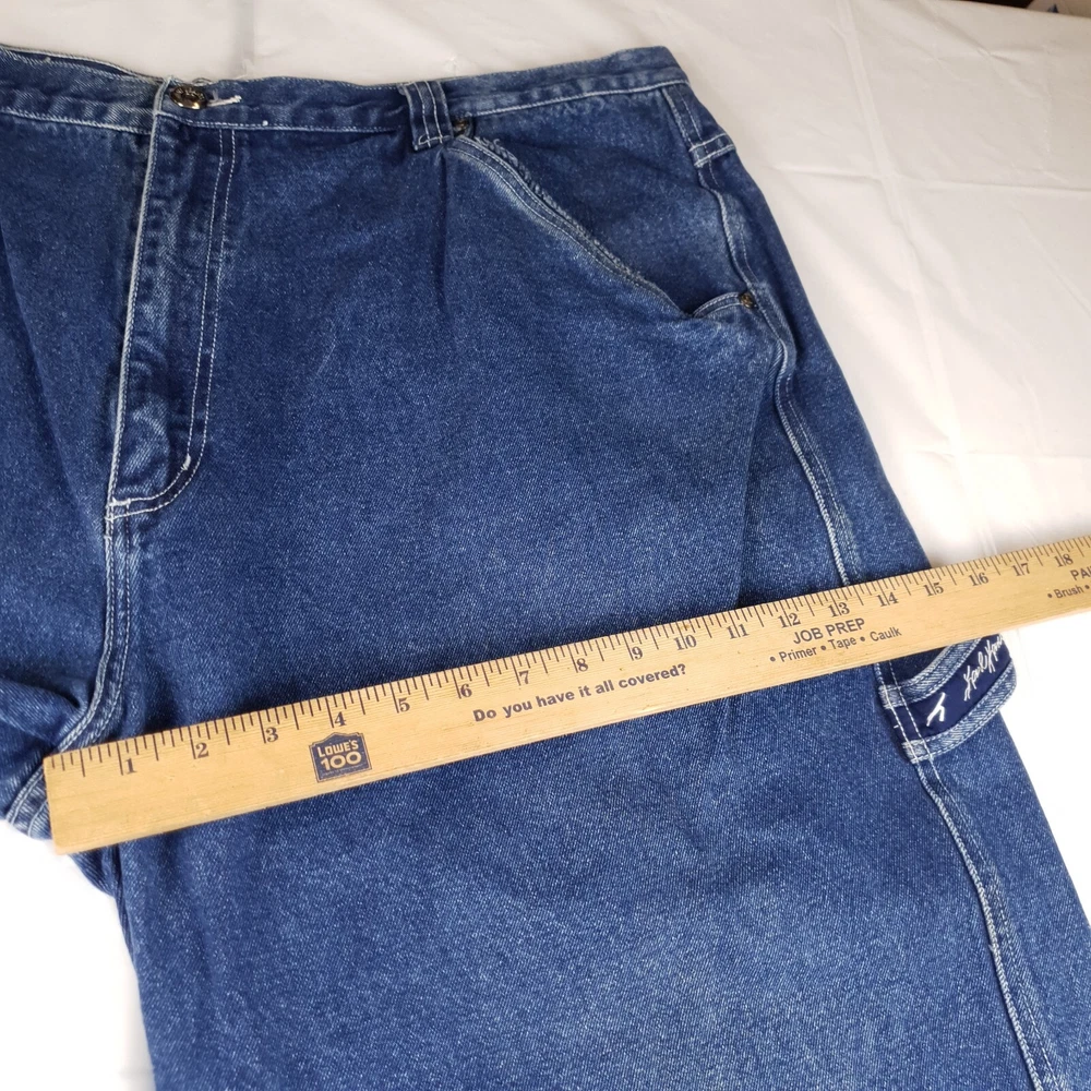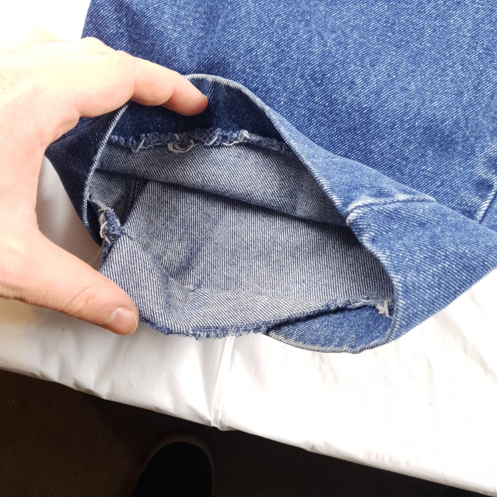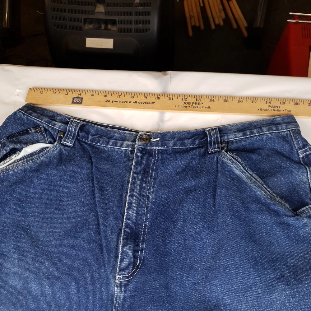 Original owner cut and glued the bottoms to hem them see pics one side is becoming unglued/sewn. Tagged size 42x34 measures 40x28 see photos for measurements to determine proper fit before buying. Thanks.
