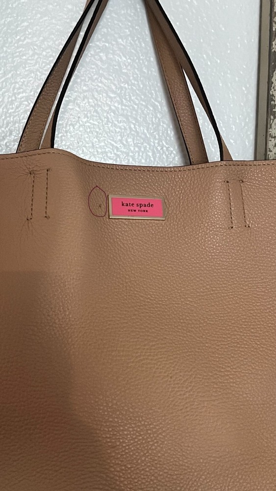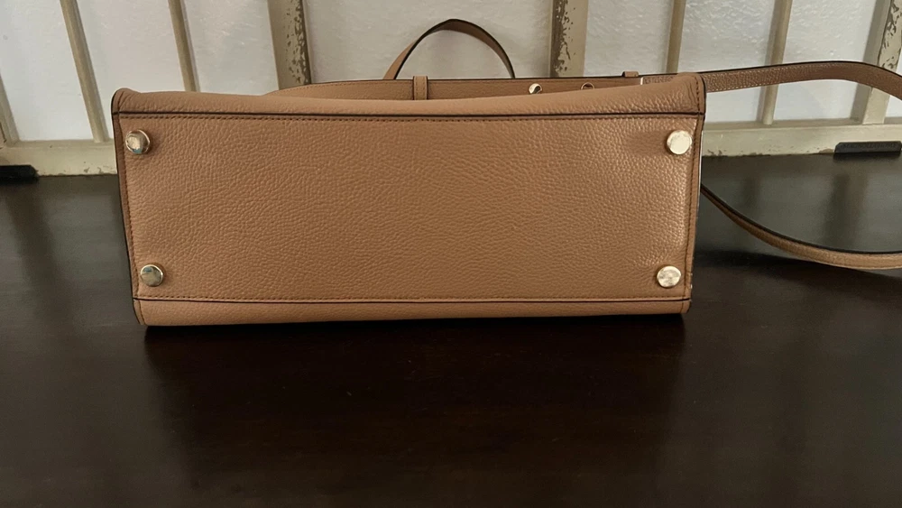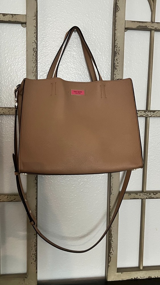 Kate Spade Sam medium Satchel Crossbody Bag Lightfawn without pouch (Pre-owned). Some damage on the inside of bag and by the Kate Spade logo. Damages are seen on the pictures provided.
