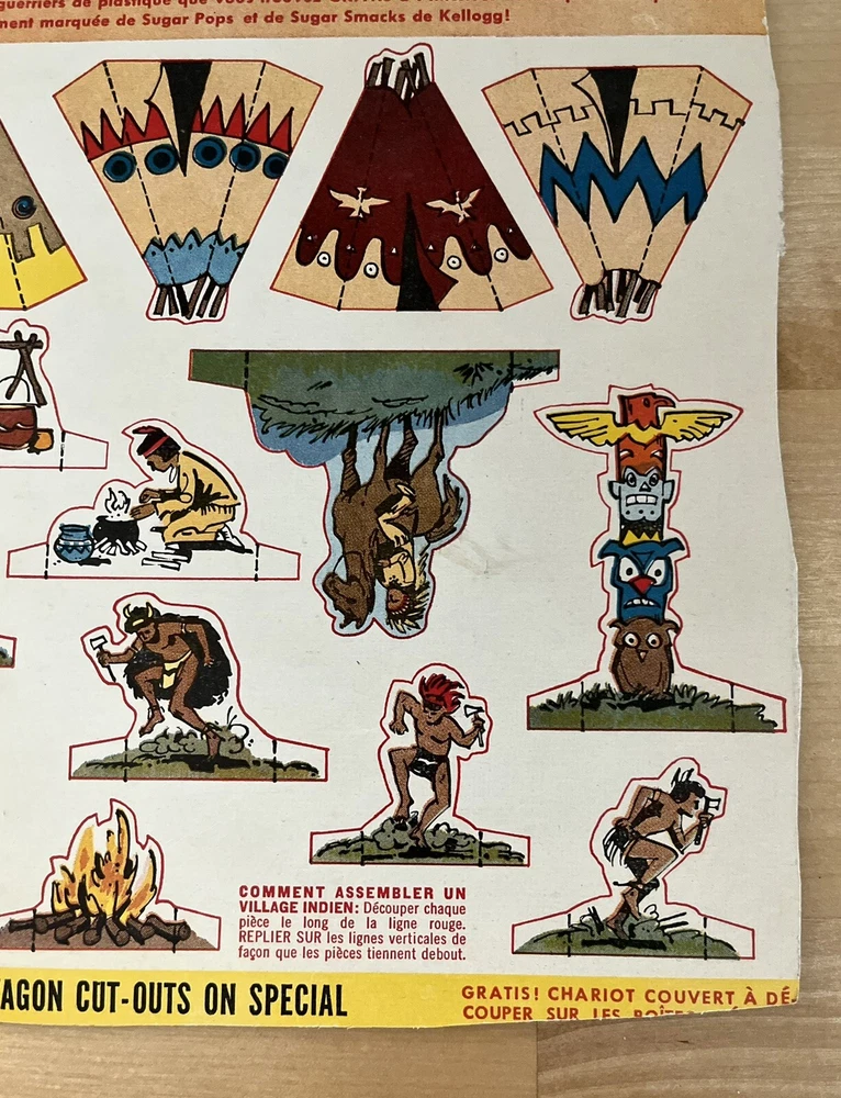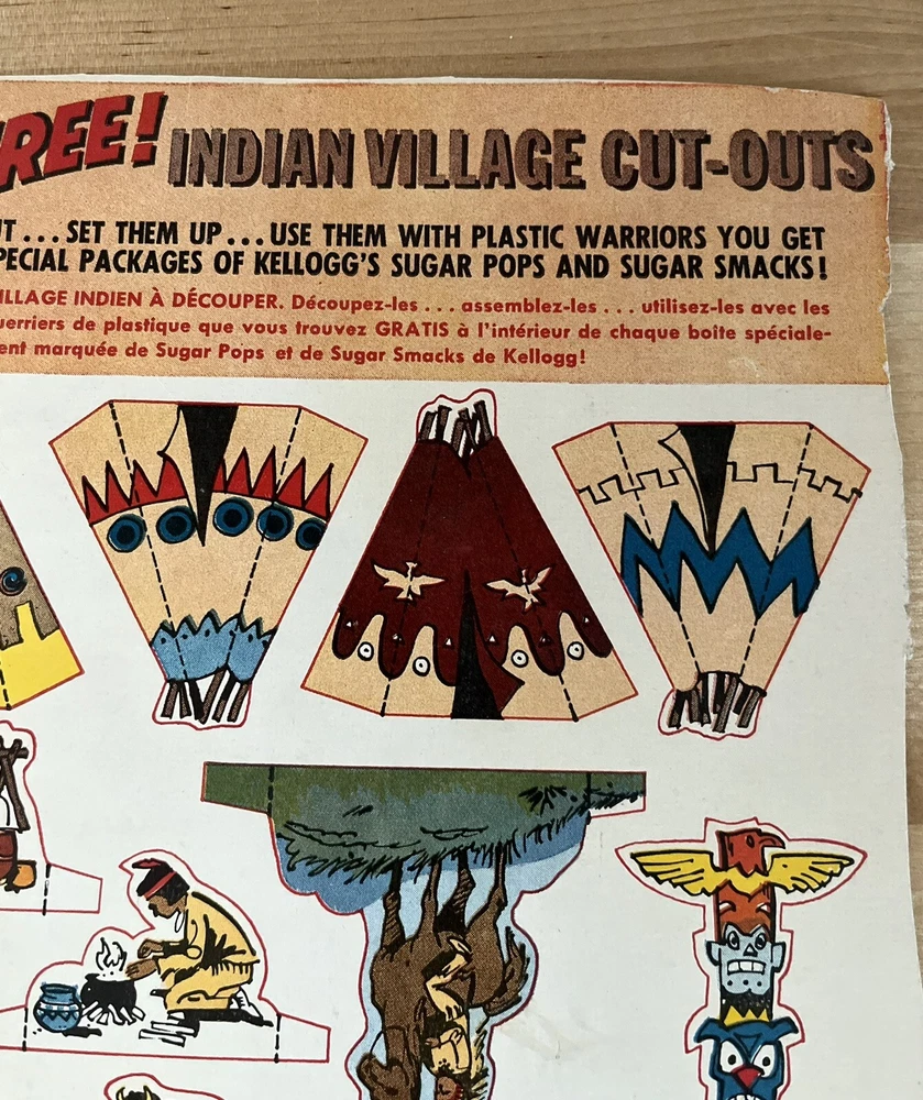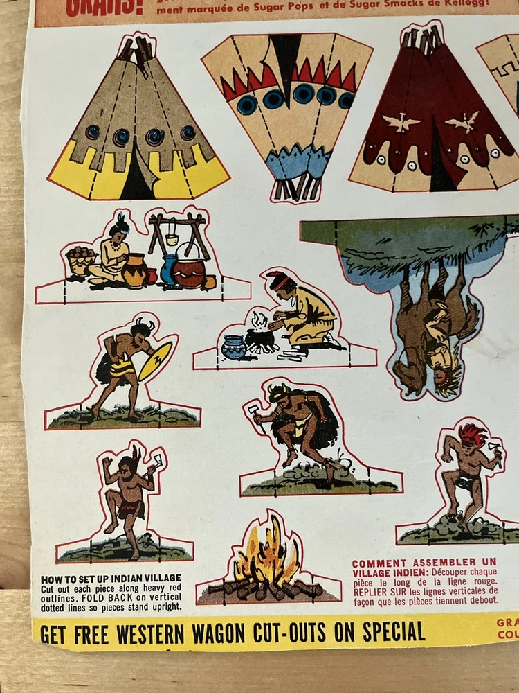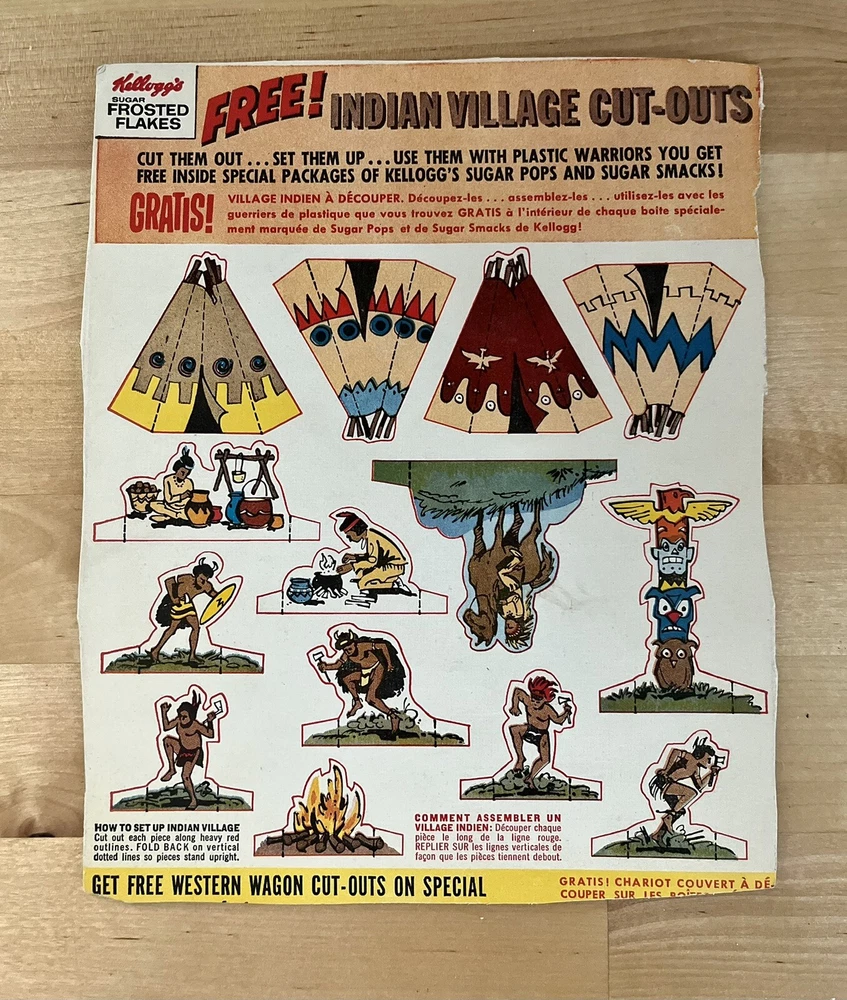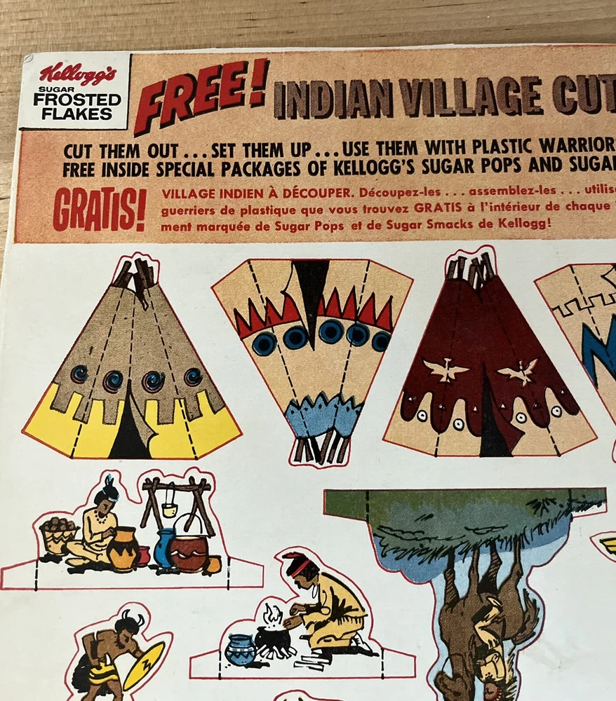 Vintage Kelloggs Cereal Sugar Frosted Flakes Indian Village Back Box Cut Outs