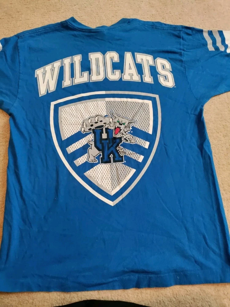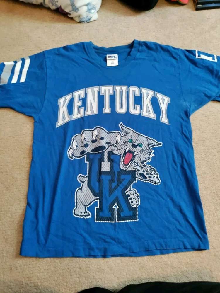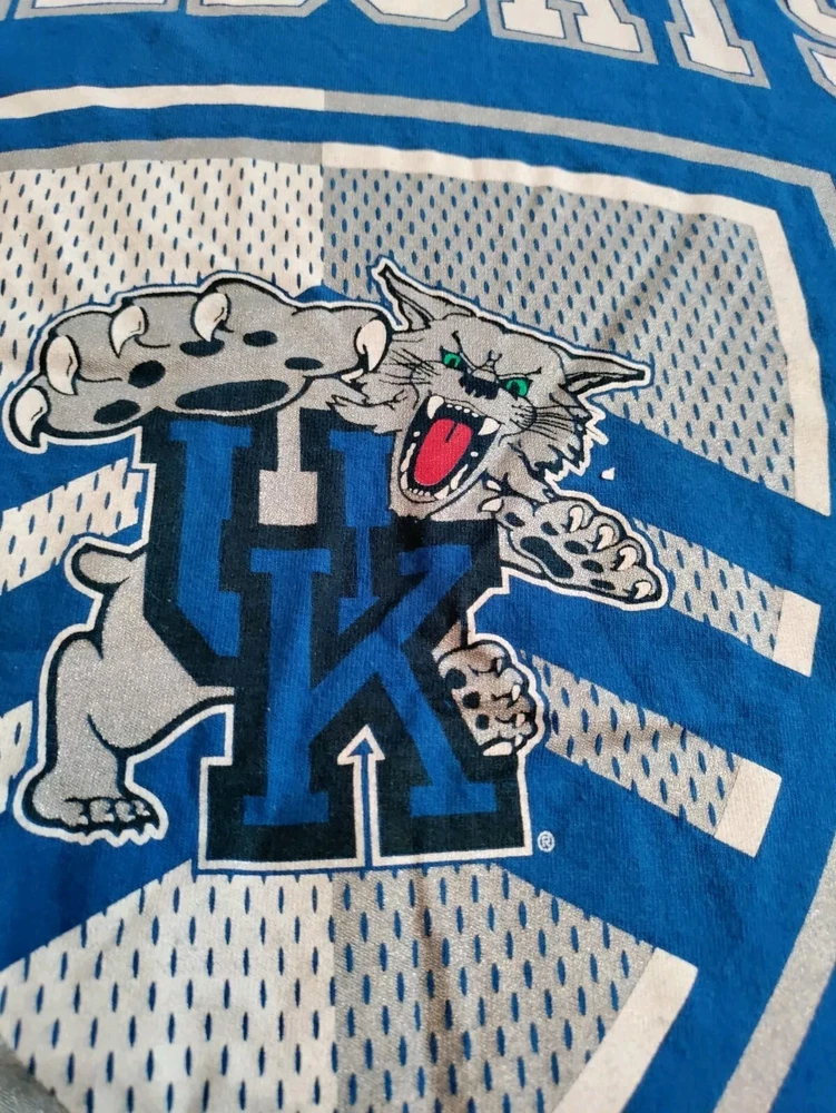 Super cool vintage Kentucky wildcat shirt single stitch all around. Shirt has cool sleeve hits on each sleeve andd still has the sparkly effect to the graphic on the back. Feel free to message me if you have any questions or would like more pictures