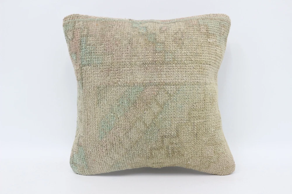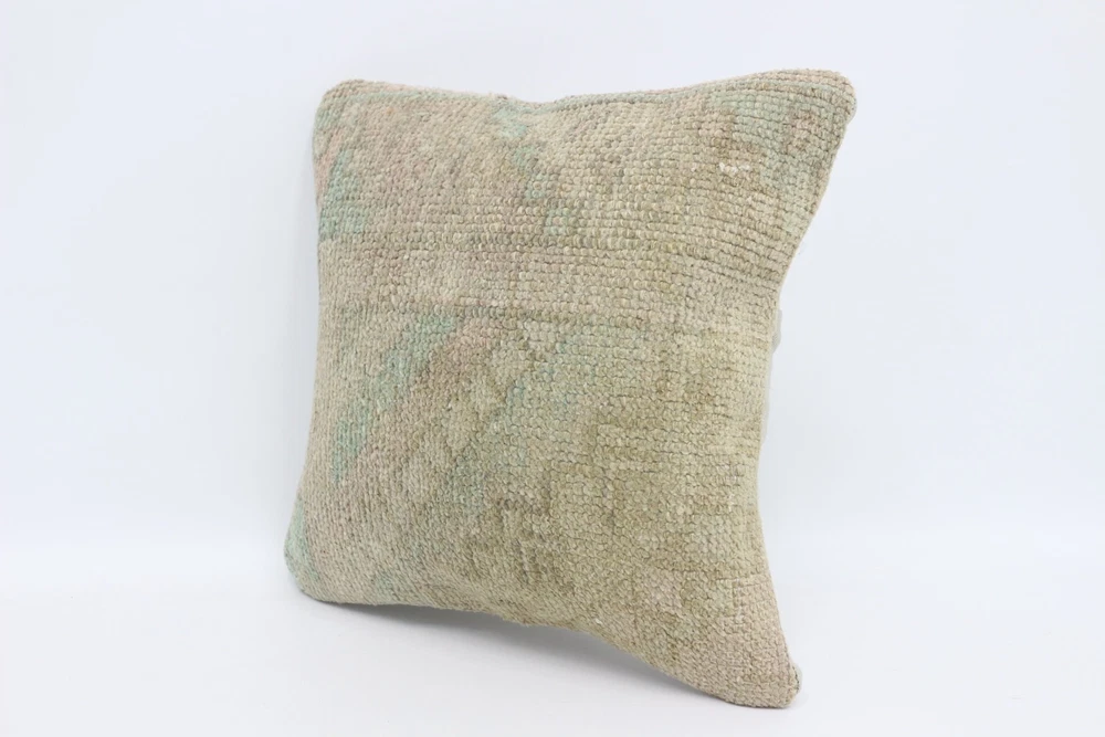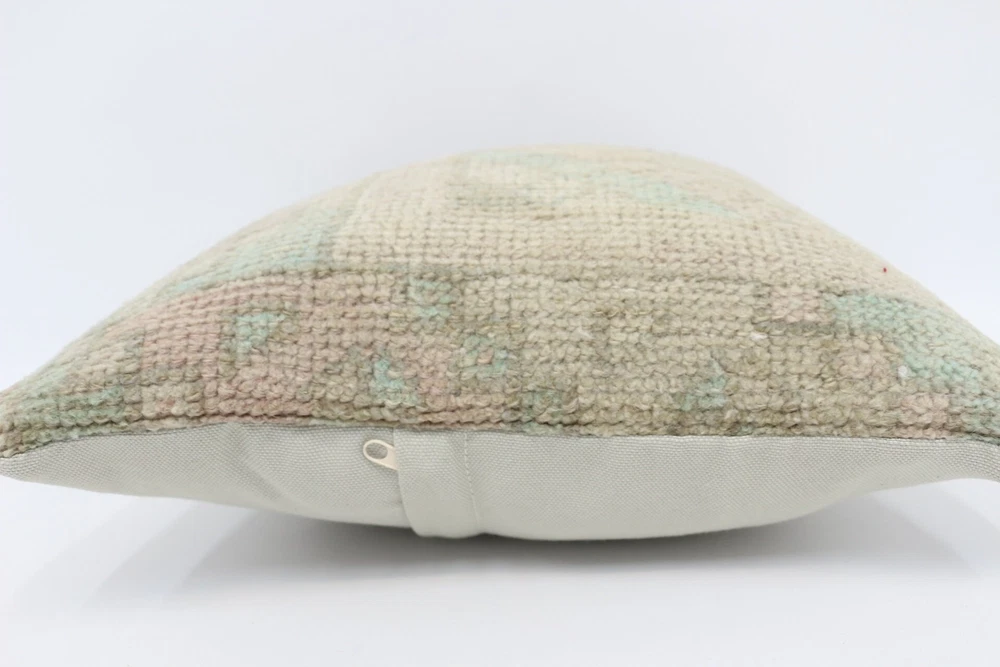 Vintage Kilim Pillow, Vintage Pillow, 14"x14" Beige Pillow Sham