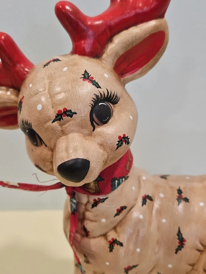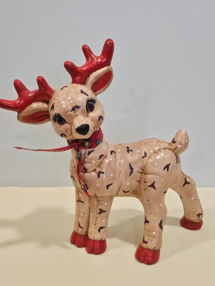 Vintage Kimble Mold Quilted Reindeer Ceramic Christmas 1988 Hollies Retro