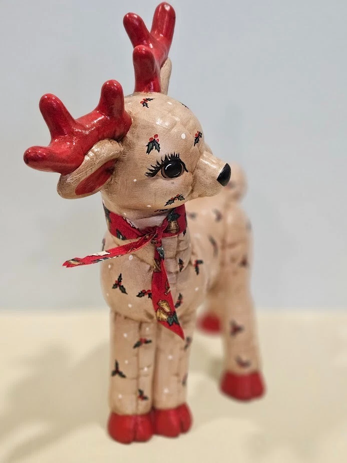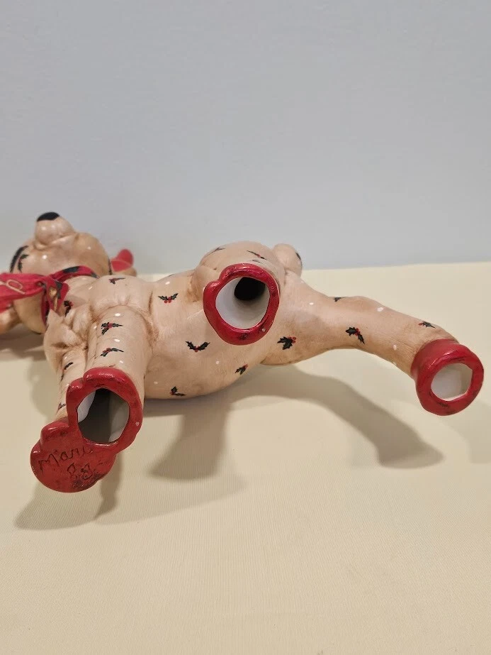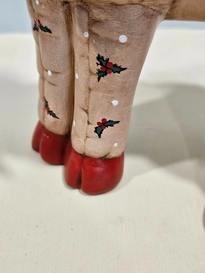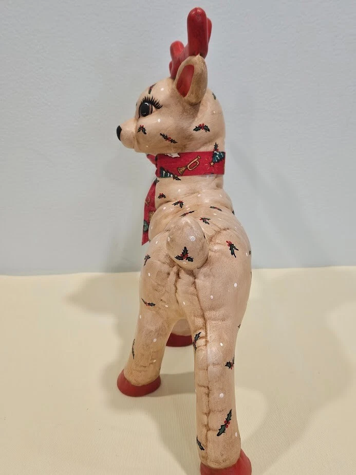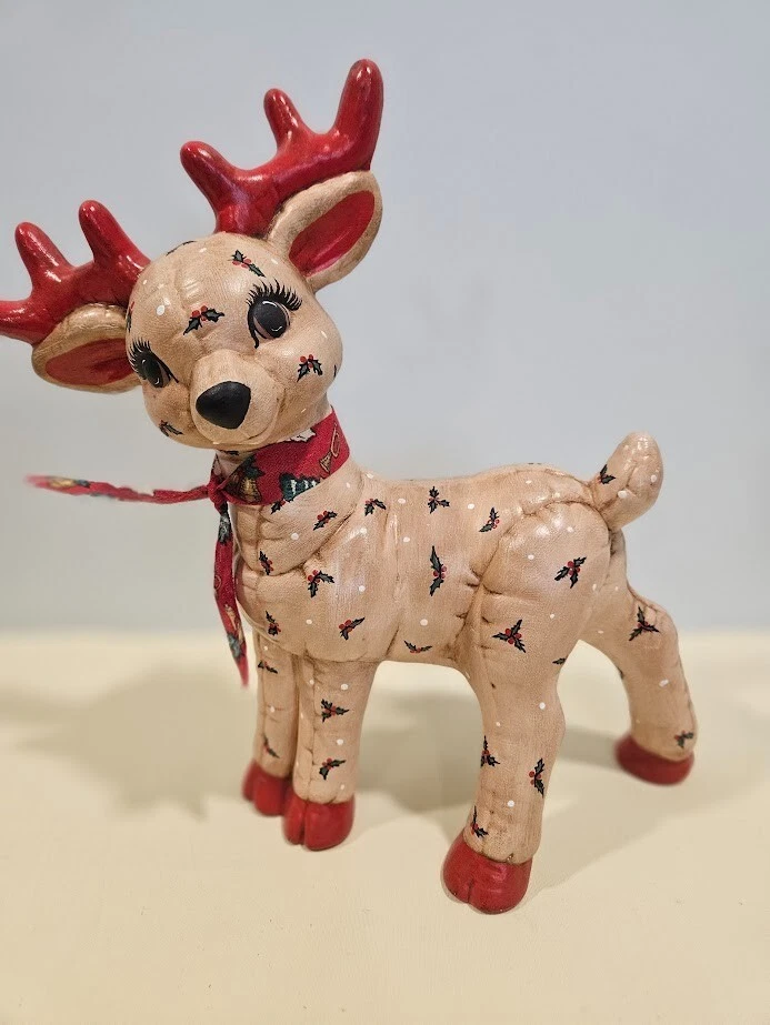 Era: Late 20th Century (1970-1999) Type: Figurine Character: Reindeer Style: 1980s Collection: Santas Reindeers Finish: Matte Department: Adults Theme: Christmas Reindeers Features: Indoor Subject: Reindeer Original/Reproduction: Original Occasion: Christmas Character Family: Christmas Item Height: 10.75 Material: Ceramic Color: Multicolor Size: Medium Year Manufactured: 1988 Pattern: Quilted Handmade: Yes Brand: Kimple Mold Country/Region of Manufacture: United States Time Period Manufactured: 1980-1989 Signed: No File number: 24-09-378 Number in Pack: 1 Item Length: 7.5 in