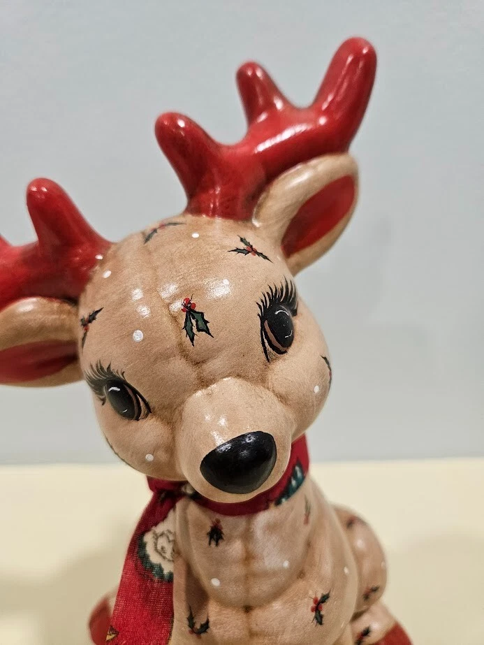 Kimble Mold Quilted Reindeer Ceramic Figurine from 1988. Handmade, manufactured in the United States during the late 20th century. Ships from a smoke free, pet free home! Please see all photos for exact item condition. Thank you for checking out my store! All items are shipped within 1 or 2 business days. Make a bundle to save on shipping cost. Check out my store for additional Reindeers and Sled!