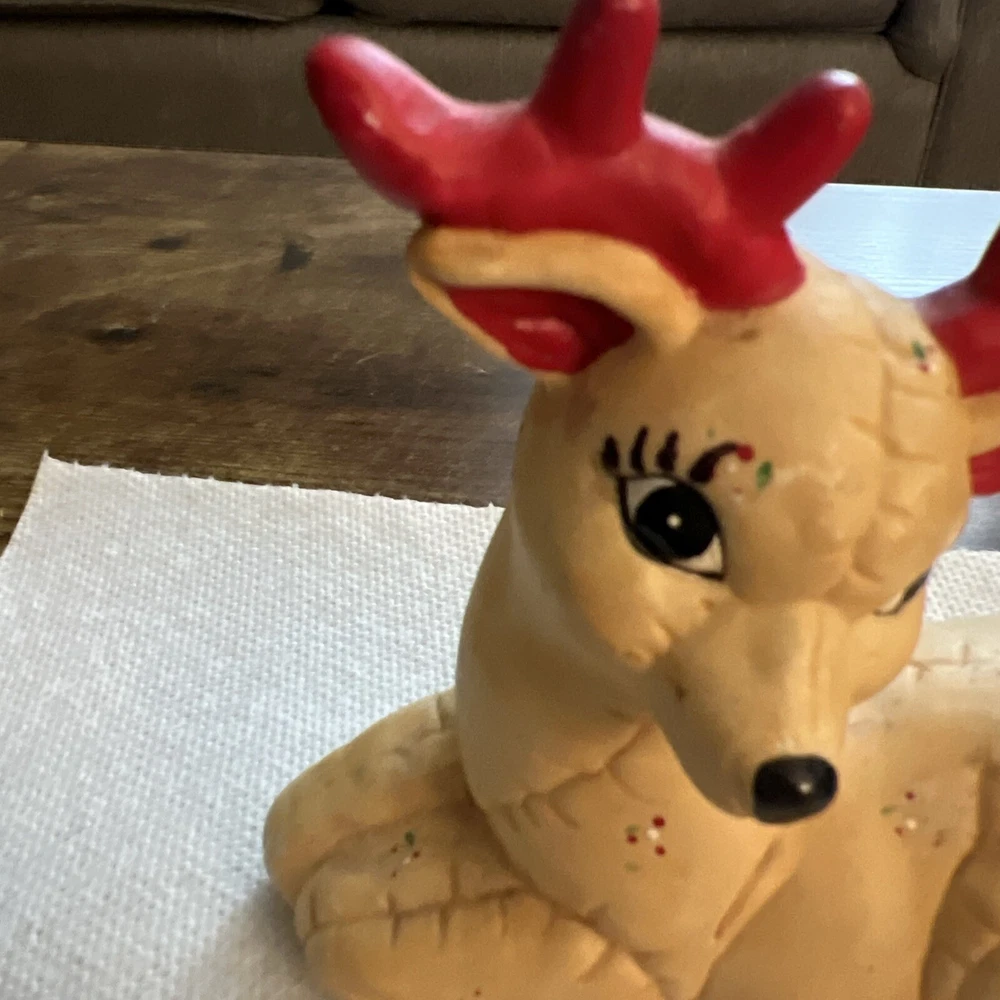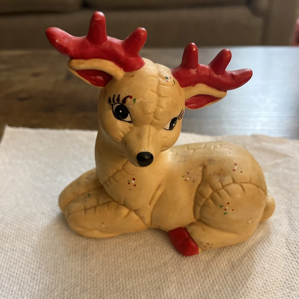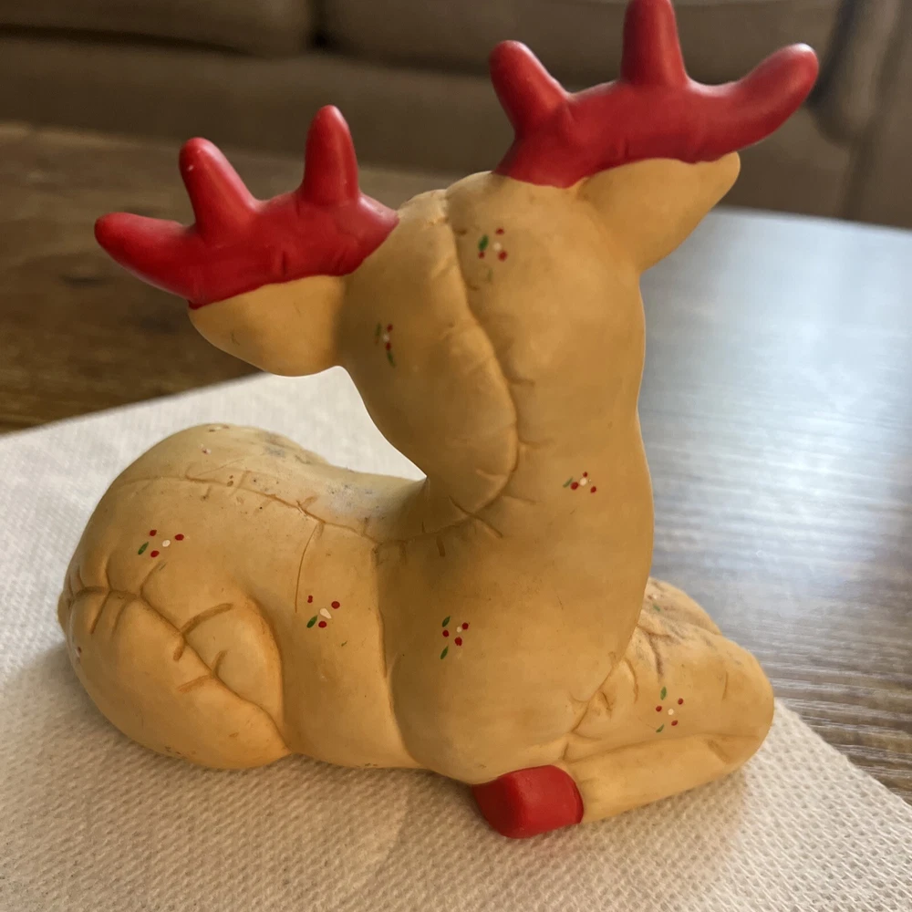 Vintage Kimple Mold Quilted Ceramic 5x5" Christmas Reindeer Figurine. Condition is Used. Shipped with USPS Ground Advantage.