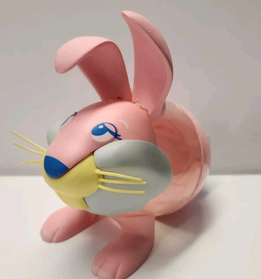 Vintage Kinder Surprise Ferrero Pink Bunny Easter Bunny Plastic Container Cute 5 imch long. Empty