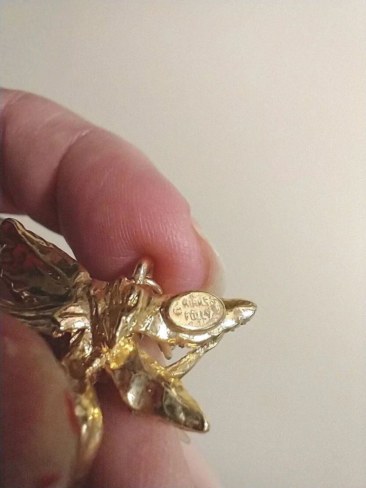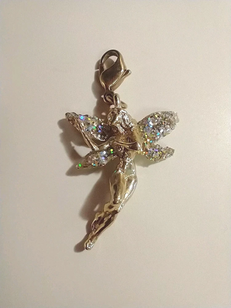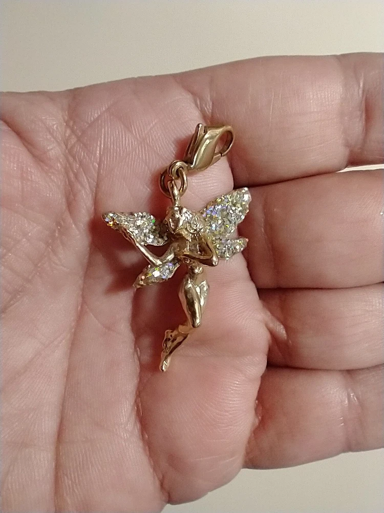 Please see images for size and condition description. Kirk's Folly gold tone fairy charm w crushed AB crystals. No missing stones and no verdigris. Lobster clasp in good working order. Great for a charm bracelet or to wear on a necklace. As is. Thanks!