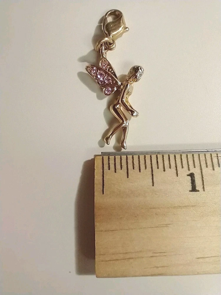 Please see images for size and condition description. Vintage Kirk's Folly gold tone charm with pink crystal wings. Unsigned. Retired. No missing stones and no verdigris. Lobster clasp is in good working order. Great to add on a charm bracelet or wear on a necklace. As is. Thanks!