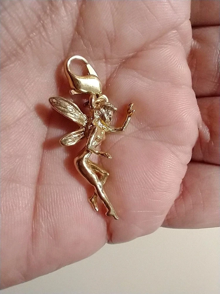 Please see images for size and condition description. Kirk's Folly gold tone waving fairy charm. Unsigned. Retired. No verdigris. Lobster clasp is in good working order. Great to add to a charm bracelet or wear on a necklace. As is. Thanks!
