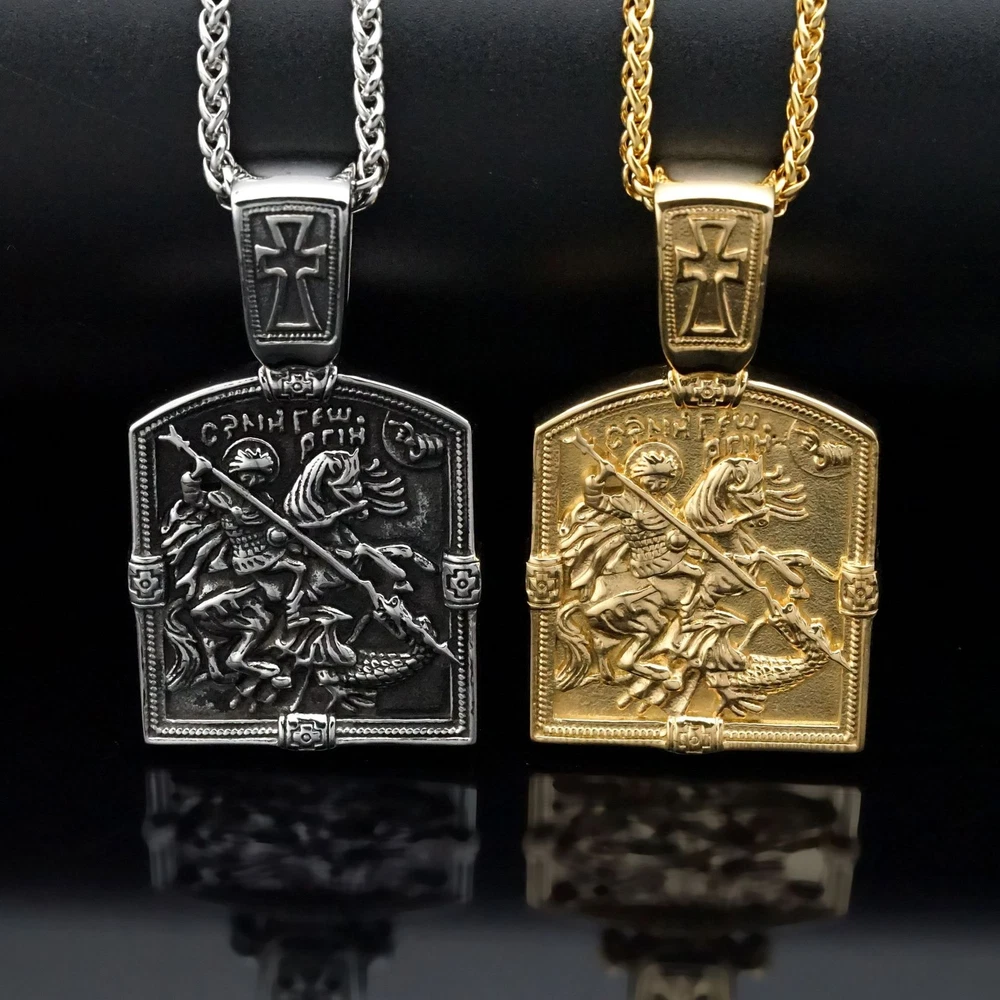 Vintage Knight Cross Double-Sided Stainless Steel Pendant Necklace