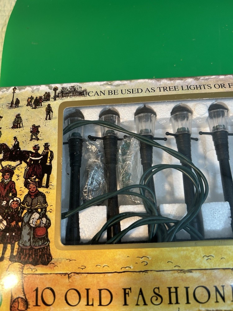 The product is a set of 10 vintage Christmas street lamp lights by Kurt Adler, designed in an old Victorian style. These lights are perfect for adding a nostalgic touch to your holiday decor, with a classic and whimsical design that will bring a touch of vintage charm to your Christmas tree or outdoor display. The Victorian style adds a traditional and elegant feel to the holiday season, making these lights a unique and eye-catching addition to your collection of holiday figurines and decor. About 4.5 inches tall