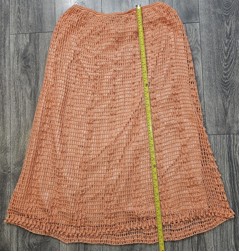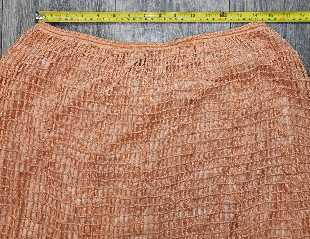 Vintage Kyouko Design Studio Crochet Knit Set Coral Wide Top Lined Skirt Size XL