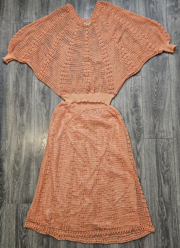 Sleeve Length: Bat Sleeves Department: Women Country/Region of Manufacture: Philippines Fit: Relaxed Vintage: Yes Neckline: Crew Neck Fabric Type: Crochet Features: Lined Type: Outfit/Set Pattern: Solid Size: XL Color: Coral Theme: Designer Accents: Crochet Garment Care: Machine Washable Set Includes: Skirt, Knit Top Occasion: Activewear Character: Beach Size Type: Regular Handmade: Yes Closure: Pullover Material: 100% Cotton Season: Fall, Spring, Summer Number of Pieces: 2 Piece Character Family: Knitted Performance/Activity: Beach Personalize: No Brand: Kyouko Design Studio