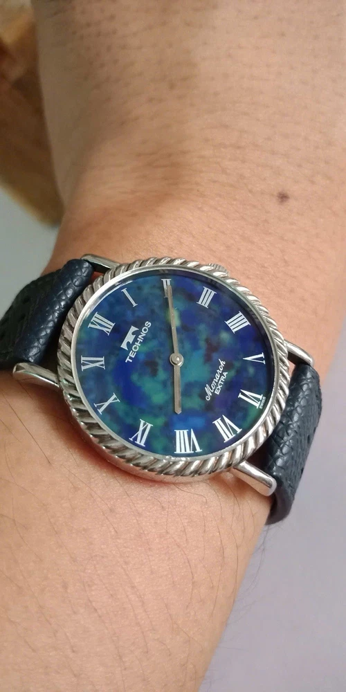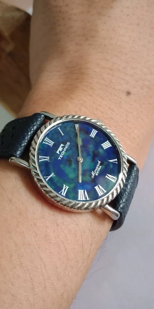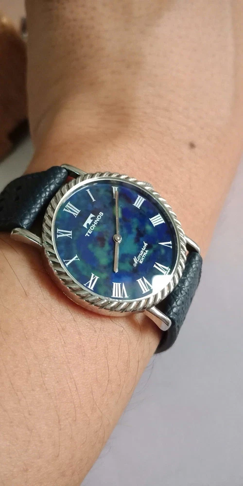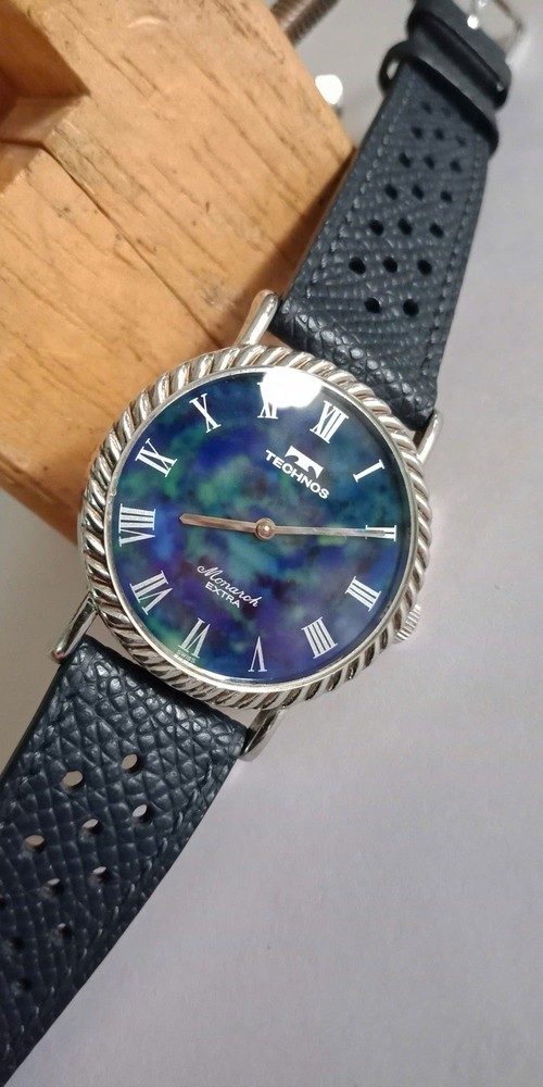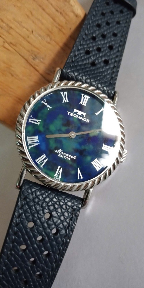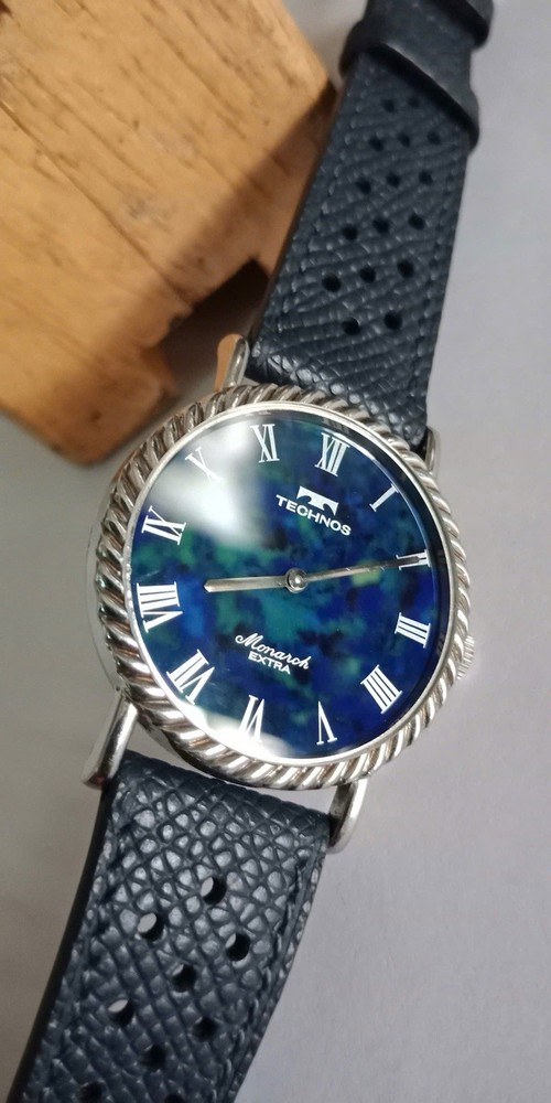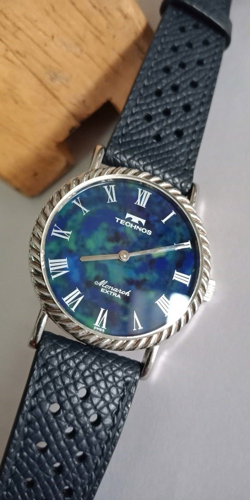 Rare Lapis stone dial/Technos Monarch Extra 17jewels, manual winding. Lapis stone dial Movement: hand-winding Diameter: 33mm, lug to lug: 36.5mm It runs well and Not OH service yet. PLEASE SEE ALL PHOTOS BEFORE BUYING ANY questions pls DM me! Thanks!