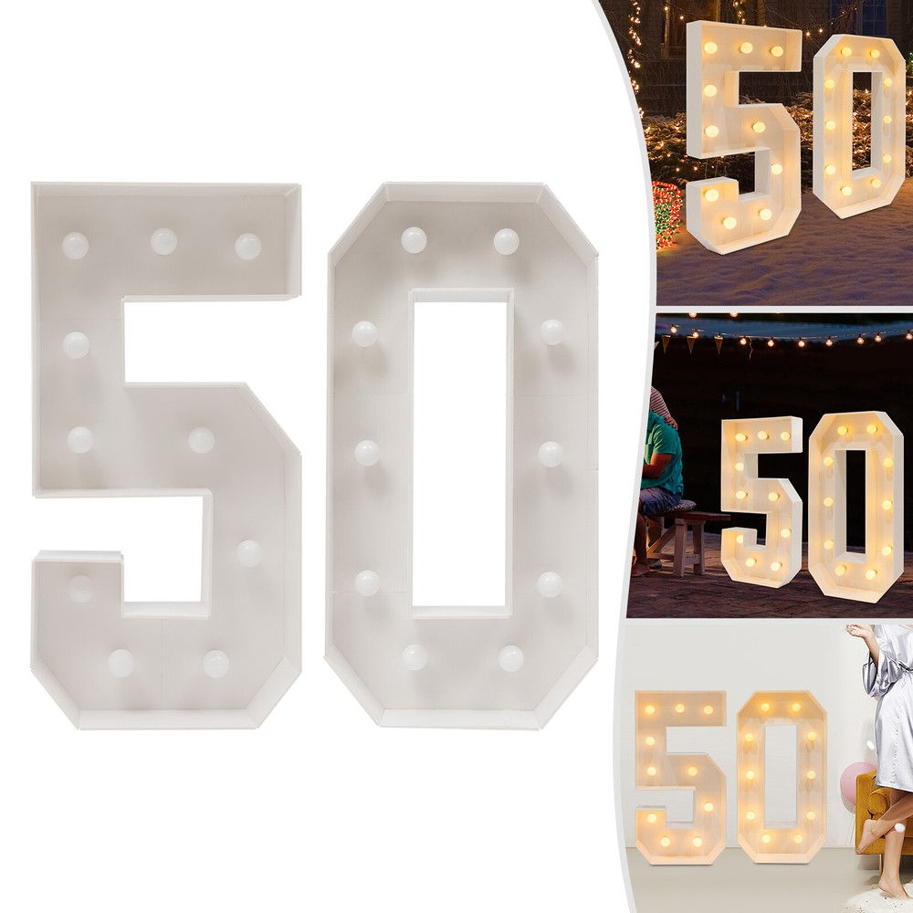 Specifications Color: White Material: KT Board Process: Machine Cutting Style: Vintage Indoor/Outdoor Usage: Indoor Assembly Required: Yes Mounting Type: Floor Standing Power Source: Battery Powered EU Energy Label Efficiency Labeling Class: A++to E Efficiency: E Battery Type: 6* AA Batteries(Not Included) Light Source: 20* LED Bulbs(Included) Light Color: Warm Color Temperature: 2000-3000K Product Height: 100cm/39.37in Package Size: 41*25*19cm/16.14*9.84*7.48in Gross Weight: 1.25kg/2.76lbs Net Weight: 1.1kg/2.43lbs Vintage LED 50 Light Up Number Warm Lamp For Birthday Party Decoration 50th Gift Description Eager to add a touch of extraordinary style to your birth celebration? These light-up numbers combine light and numbers to create a favorable atmosphere. It is not only a witness to time, but also an engraver of emotions and memories, tailor-made for your birthday party or anniversary. Use it at your birthday party or anniversary event, it will surely impress your guests and become an unforgettable memory! Key Features Build to Last : This product is mainly made of KT board with a machine cutting process, which is hard, abrasion, and corrosion- resistant to ensure long-term use. Excellent Light Source : 20 LED bulbs in warm colors with a color temperature of 2000-3000K not only give a warm and bright glow but are also energy-saving and create a great atmosphere. Battery Powered : Each digit is powered by 3 AA batteries (not included) and has a switch on its battery compartment that can be used to control the light, which can be turned on/switched off when needed for special occasions. Great Decoration : These numbers stand at 39.37in tall and come with a white number color and warm light color, presenting a retro style. It can make your birthday or anniversary party more beautiful and eye-catching. When the light is turned on, it becomes a number ornament. Great Gift : Thanks to its beauty and practicality, you can bring this product home to yourself, your lovers, or your family to enjoy a happy 50th birthday party. Personalize Your Backdrop : You can use balloons, flowers, or other decorations to decorate this product, creating a unique backdrop. Easy to Assemble : The frames are pre-cut, you just need to use double-sided tape to make them into 50 shapes and then put the LED bulbs into them, which is convenient and easy. Easy to Carry and Store : Its lightweight (2.43lbs) and detachable design allow you to take it around and it can be stored easily when it is not in use. Quality Service : We stand behind all our guests and look forward to assisting you with your purchase. It is our pleasure to answer your confusion and questions. The end of the story between us is not "we sell and you buy". Details Wide Bottom : The wide bottom makes the force area large, making the overall stability of the product good, and not easy to tip over. Smooth Edges : They not only enhance the aesthetics of the product but also improve safety during installation and use. Application It is suitable for birthday parties, anniversaries, and other celebration activities. Specifications Color: White Material: KT Board Process: Machine Cutting Style: Vintage Indoor/Outdoor Usage: Indoor Assembly Required: Yes Mounting Type: Floor Standing Power Source: Battery Powered EU Energy Label Efficiency Labeling Class: A++to E Efficiency: E Battery Type: 6* AA Batteries(Not Included) Light Source: 20* LED Bulbs(Included) Light Color: Warm Color Temperature: 2000-3000K Product Height: 100cm/39.37in Package Size: 41*25*19cm/16.14*9.84*7.48in Gross Weight: 1.25kg/2.76lbs Net Weight: 1.1kg/2.43lbs Package Included 1 Pair* 50 Light Up Numbers 2* Double-sided Tapes 2* Battery Boxes 20* LED Bulbs 1* English Manual Other Accessories for Assembly Notes Please do not use it in a high-temperature environment. Please note that batteries are not included in this product. Please read the instructions carefully and take note of the safety precautions contained therein. Please allow the slight color difference caused by the shooting light and the 1-3 cm error due to manual measurement, and make sure you do not mind before ordering. Payment Delivery details Terms of sales About us Contact us Payment We accept ebay payment 。 Fees such as import duties, taxes are not included in the item price or shipping costs. These charges are the buyer's responsibility. Delivery details Shipping: 2-9 working days to: USA Terms of sales We maintain high standards of excellence and strive for hundred percent customer satisfaction. Feedback is very important to us. We hope that you contact us immediately before you give neutral or negative feedback, so that we can address your concerns. It is impossible to address issues if we do not know about them! About us Your satis faction is our ultimate goal. We work hard to earn your trust and future business. Our certified technicians have tested each item before shipping. The unit comes with 1 year limited warranty on all manufacturing defects. a) If you receive a defective item, you may return it or ask for a discount. Please contact us within 14 days after you receive the package. b) What you returned must be intact and in its original packaging as re? u. Customer is responsible for shipping costs of the returned item. c) We will cover the cost of shipping back t with the shipping rate indicated in the registration page. We will send you a new unit or refund the full payment you paid. Thank you. Contact us Business Hour Business Hour: Monday To Friday: 8:30 AM to 5:00 PM (Beijing China time) Due to time zones, our reply to your questions may not be immediately. But within above working time, we will reply your email within 24 hours. If it's non-workdays, please kindly be patient and wait till Monday. Please contact us with ebay message. Please feel free to contact us if you have any questions. Monday To Friday: 8:30 AM to 5:00 PM (Beijing China time) Due to time zones, our reply to your questions may not be i