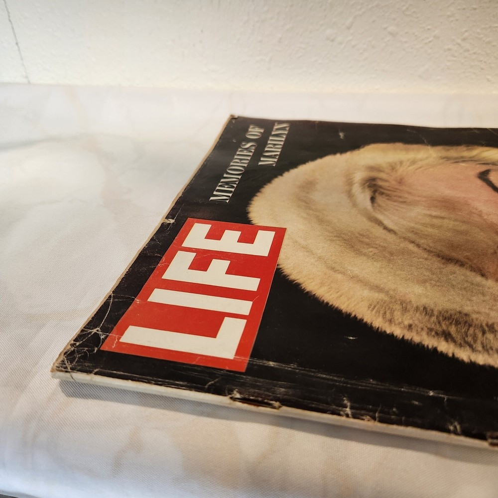 Vintage, in decent condition. Magazine does have some flaws, see photos. August 17, 1962 Life Magazine, Memories of Marilyn. Stored in a smoke-free and pet friendly environment. All orders ship within two business days, combine orders for discount on shipping. Reasonable offers accepted. Thanks for looking!