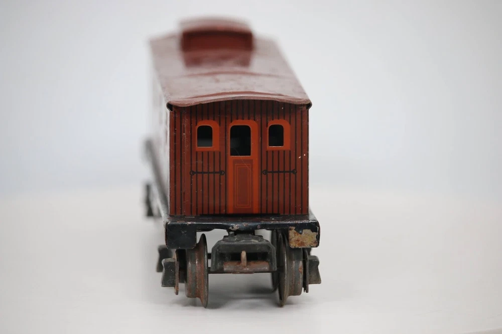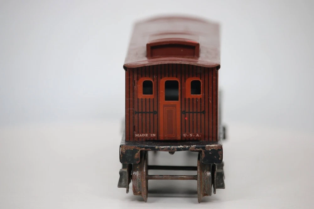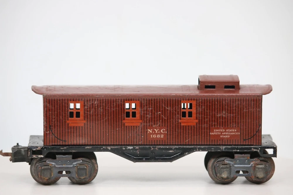 Vintage LIONEL Pre War NYC tin CABOOSE # 1682 SKU#007616 Look closely at the pictures to see further details. We ships USPS PLEASE see photos for detailed condition!! AC PLEASE LOOK AT THE PHOTOS CAREFULLY BEFORE PURCHASING!! If you are purchasing more than one item from us and would like combined shipping, PLEASE request an adjusted invoice from us while still in the cart and BEFORE paying. eBay does not usually calculate combined shipping accurately and you might get overcharged. Please be aware that when we photograph items, we use lighting that will show the details well. Although we try to present the product as accurately as possible, the lighting may affect the overall look of the item by appearing lighter/darker or possibly a different hue than the actual item. Depending on the type of lighting you have in your home, there may be some differences between the photos and the actual item. If this is a concern of yours, please feel free to request additional photos made in natural lighting or ask for a more detailed description of the item PRIOR TO PURCHASE! PLEASE NOTE: We greatly appreciate your interest in our item for sale. We look forward to a pleasant, quick and satisfying transaction for everybody, so please note the following information before bidding. Thank you! ITEM DESCRIPTIONS: * We will try to describe items well and provide plenty of photos. Please review these carefully before bidding or purchasing. * Only the items pictured and described are what you will receive when purchased. * We will occasionally offer an item clearly marked "AS-IS". This means that we are not sure if it works because we are unable to test it for whatever reason. We will offer these at a discounted price then a similar "working" item. It is possible that these items will work fine, but it also is possible that these items are more useful for their parts. Please only bid on or purchase these items if you are well aware of this, as we will only provide refunds of actual item price (no shipping cost refunds) for these items. * If you have any questions that aren't addressed by the descriptions or photos, please feel free to ask before you bid. * May need detailed cleaning SHIPPING: * We usually do not offer shipping to international addresses, but ARE WILLING TO TAKE CONSIDERATIONS. * We try to pack items as carefully as possible, but damage may occur during shipping. If you receive an item that was damaged in shipping, please contact us and we will work with you to resolve the problem. * We will combine shipping costs for all items the same buyer purchases from us within 2 days. Please wait to pay for items until you're done shopping with us. Please contact us if you're expecting to buy more items from us, or to have us adjust the shipping costs. * We will usually ship items out within 24 hours of payment being received Sunday through Friday at noon. We will notify the buyer if there will be a delay in shipping for some reason. Please allow additional time for holidays and weekends when the post office is closed. If payment is received after noon (EST) on Friday, the item might not be shipped until the following Monday. * We do try to recycle shipping materials as much as possible. RETURNS: We abide by eBay's Money Back Guarantee. We definitely want our customers to be happy with their purchase! You may return an item within 30 days of receiving it with the following guidelines: * If the item is defective or damaged (unless we clearly marked the listing "AS-IS"), the buyer will receive a full refund after the buyer returns it and it is received by us. Customers who falsely claim their item is defective, damaged, or not as described in order to receive a full refund and free return shipping will be permanently blocked from making future purchases from us. * If the item is as described (including "AS-IS" items) and the buyer decides for any other reason than defective/damaged to return it, only the actual price of the item will be refunded once it has been returned and it is received by us. The buyer will be asked to pay all original and return shipping charges. This includes all reasons other than defective/damaged, including wrong size, wrong type, changed mind, etc. All "AS-IS" items will fall into this category of return. Please make sure the item is what you want before purchasing it. * Please contact us before initiating a refund request. FEEDBACK: We always leave feedback at the end of transaction. We consider the transaction to be over when we receive feedback from the buyer confirming the item arrived satisfactorily. If you are unsatisfied with your purchase please contact us before leaving neutral or negative feedback. WE APPRECIATE POSITIVE FEEDBACK IF YOU ARE SATISFIED WITH YOUR PURCHASE! THANK YOU FOR YOUR INTEREST IN THIS ITEM!