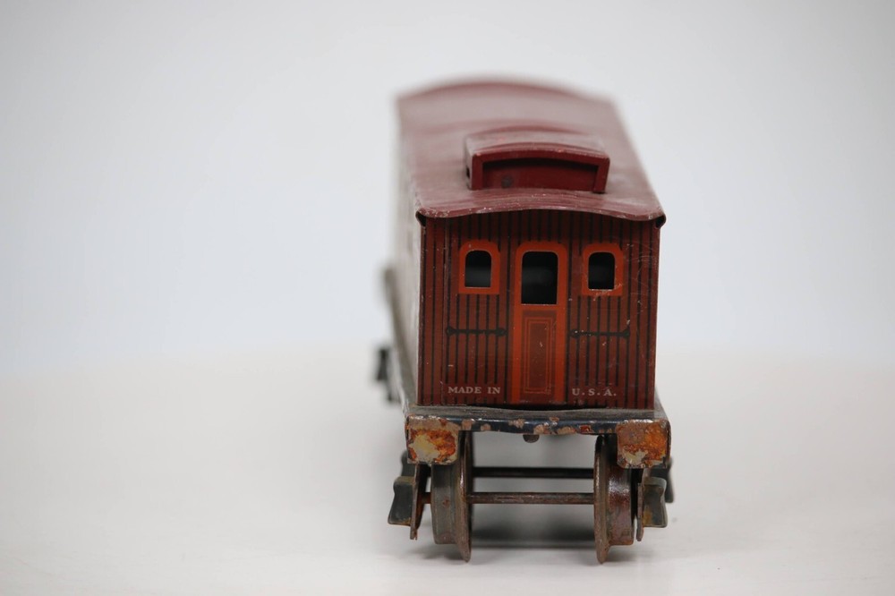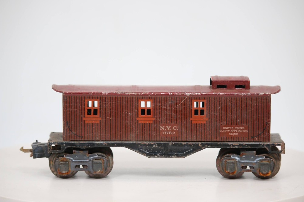 Vintage LIONEL Pre War NYC tin CABOOSE # 1682 SKU#007616 Look closely at the pictures to see further details. We ships USPS PLEASE see photos for detailed condition!! AC PLEASE LOOK AT THE PHOTOS CAREFULLY BEFORE PURCHASING!! If you are purchasing more than one item from us and would like combined shipping, PLEASE request an adjusted invoice from us while still in the cart and BEFORE paying. eBay does not usually calculate combined shipping accurately and you might get overcharged. Please be aware that when we photograph items, we use lighting that will show the details well. Although we try to present the product as accurately as possible, the lighting may affect the overall look of the item by appearing lighter/darker or possibly a different hue than the actual item. Depending on the type of lighting you have in your home, there may be some differences between the photos and the actual item. If this is a concern of yours, please feel free to request additional photos made in natural lighting or ask for a more detailed description of the item PRIOR TO PURCHASE! PLEASE NOTE: We greatly appreciate your interest in our item for sale. We look forward to a pleasant, quick and satisfying transaction for everybody, so please note the following information before bidding. Thank you! ITEM DESCRIPTIONS: * We will try to describe items well and provide plenty of photos. Please review these carefully before bidding or purchasing. * Only the items pictured and described are what you will receive when purchased. * We will occasionally offer an item clearly marked "AS-IS". This means that we are not sure if it works because we are unable to test it for whatever reason. We will offer these at a discounted price then a similar "working" item. It is possible that these items will work fine, but it also is possible that these items are more useful for their parts. Please only bid on or purchase these items if you are well aware of this, as we will only provide refunds of actual item price (no shipping cost refunds) for these items. * If you have any questions that aren't addressed by the descriptions or photos, please feel free to ask before you bid. * May need detailed cleaning SHIPPING: * We usually do not offer shipping to international addresses, but ARE WILLING TO TAKE CONSIDERATIONS. * We try to pack items as carefully as possible, but damage may occur during shipping. If you receive an item that was damaged in shipping, please contact us and we will work with you to resolve the problem. * We will combine shipping costs for all items the same buyer purchases from us within 2 days. Please wait to pay for items until you're done shopping with us. Please contact us if you're expecting to buy more items from us, or to have us adjust the shipping costs. * We will usually ship items out within 24 hours of payment being received Sunday through Friday at noon. We will notify the buyer if there will be a delay in shipping for some reason. Please allow additional time for holidays and weekends when the post office is closed. If payment is received after noon (EST) on Friday, the item might not be shipped until the following Monday. * We do try to recycle shipping materials as much as possible. RETURNS: We abide by eBay's Money Back Guarantee. We definitely want our customers to be happy with their purchase! You may return an item within 30 days of receiving it with the following guidelines: * If the item is defective or damaged (unless we clearly marked the listing "AS-IS"), the buyer will receive a full refund after the buyer returns it and it is received by us. Customers who falsely claim their item is defective, damaged, or not as described in order to receive a full refund and free return shipping will be permanently blocked from making future purchases from us. * If the item is as described (including "AS-IS" items) and the buyer decides for any other reason than defective/damaged to return it, only the actual price of the item will be refunded once it has been returned and it is received by us. The buyer will be asked to pay all original and return shipping charges. This includes all reasons other than defective/damaged, including wrong size, wrong type, changed mind, etc. All "AS-IS" items will fall into this category of return. Please make sure the item is what you want before purchasing it. * Please contact us before initiating a refund request. FEEDBACK: We always leave feedback at the end of transaction. We consider the transaction to be over when we receive feedback from the buyer confirming the item arrived satisfactorily. If you are unsatisfied with your purchase please contact us before leaving neutral or negative feedback. WE APPRECIATE POSITIVE FEEDBACK IF YOU ARE SATISFIED WITH YOUR PURCHASE! THANK YOU FOR YOUR INTEREST IN THIS ITEM!