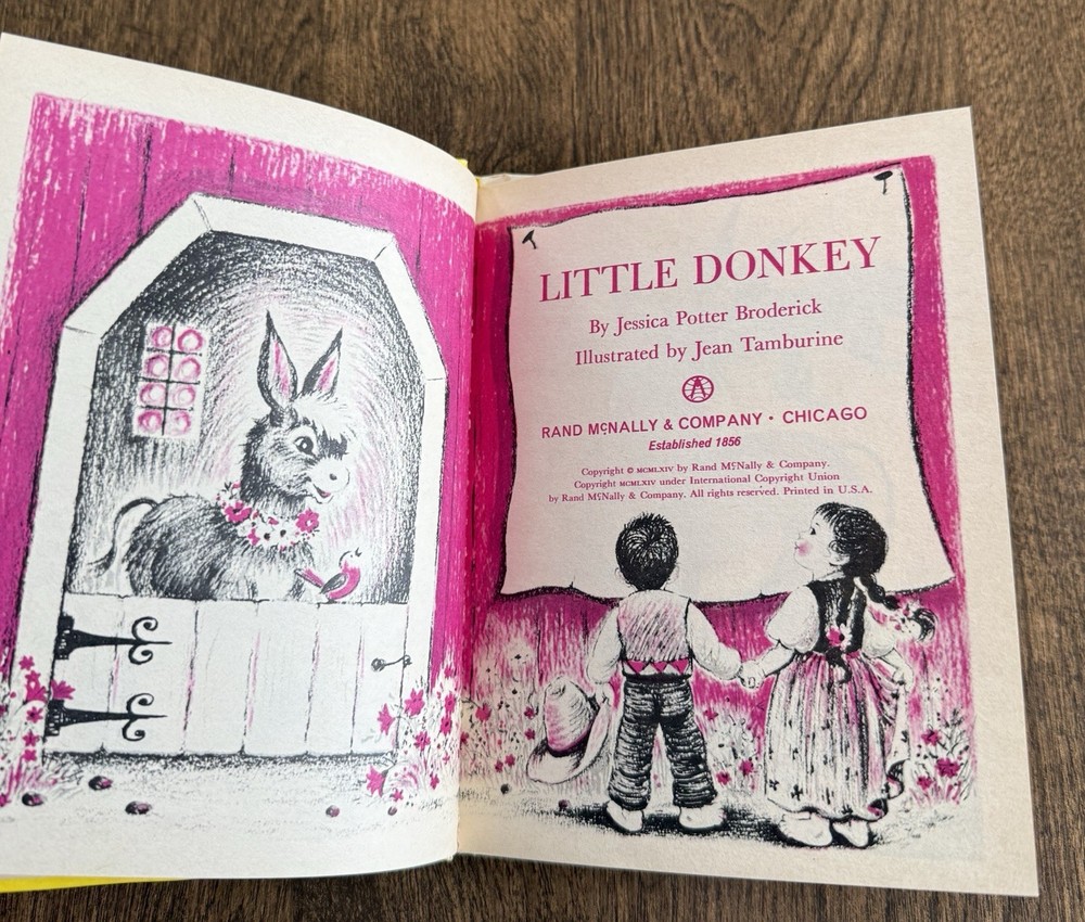 The Vintage Little Donkey Children's Rand McNally Junior Elf Book from 1964 is a illustrated hardcover book. Written by Jessica Potter Broderick and published by Rand McNally, it is a charming children's book that would make a delightful addition to any collector's library. With its nostalgic story and whimsical illustrations, this book is sure to bring joy to both children and adults alike. Hardcover Measures 6 1/2" X 5" Packaged Securely