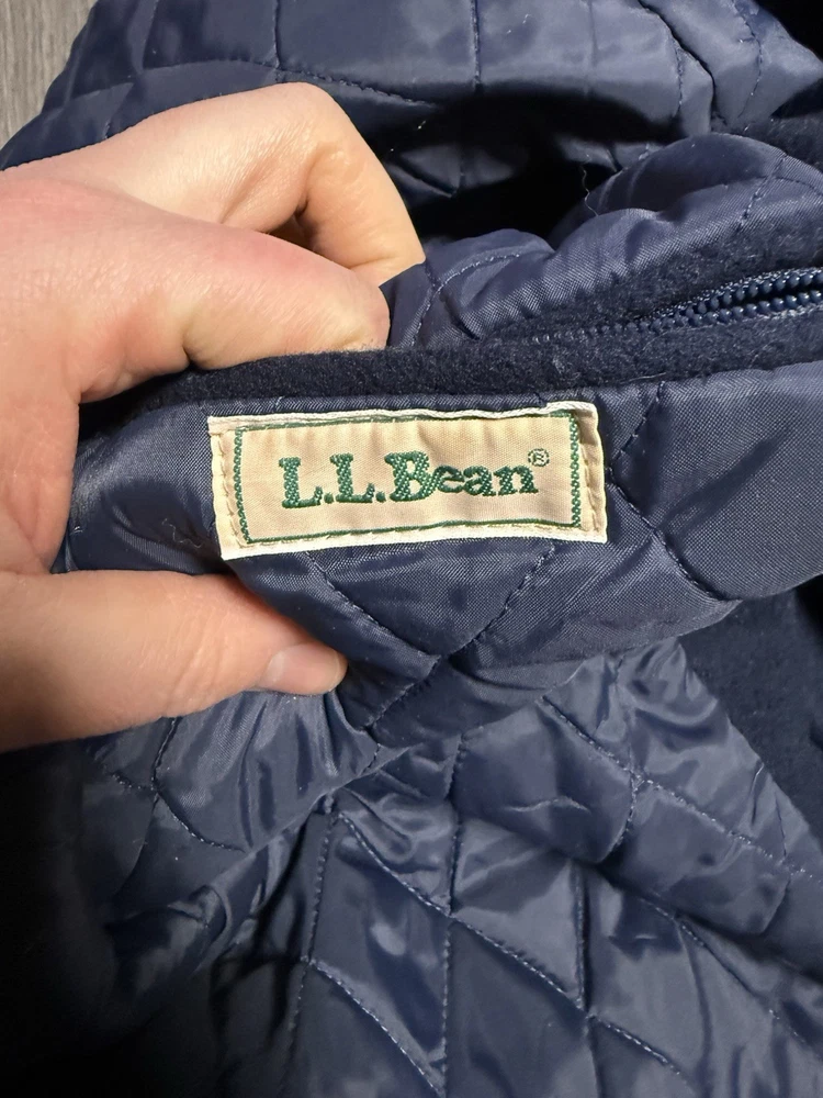This vintage LL Bean men's blue wool insulated sport coat blazer jacket in size XL Tall is a timeless piece with a solid pattern and mid-length design. Made with high-quality wool and featuring a button closure, this blazer is perfect for chilly days in style. The jacket also includes polyester insulation for added warmth, making it both practical and stylish. With a classic USA-themed design and crafted in the United States, this blazer is a must-have for any man looking for a rugged yet sophisticated outerwear option. See photo for flaws.
