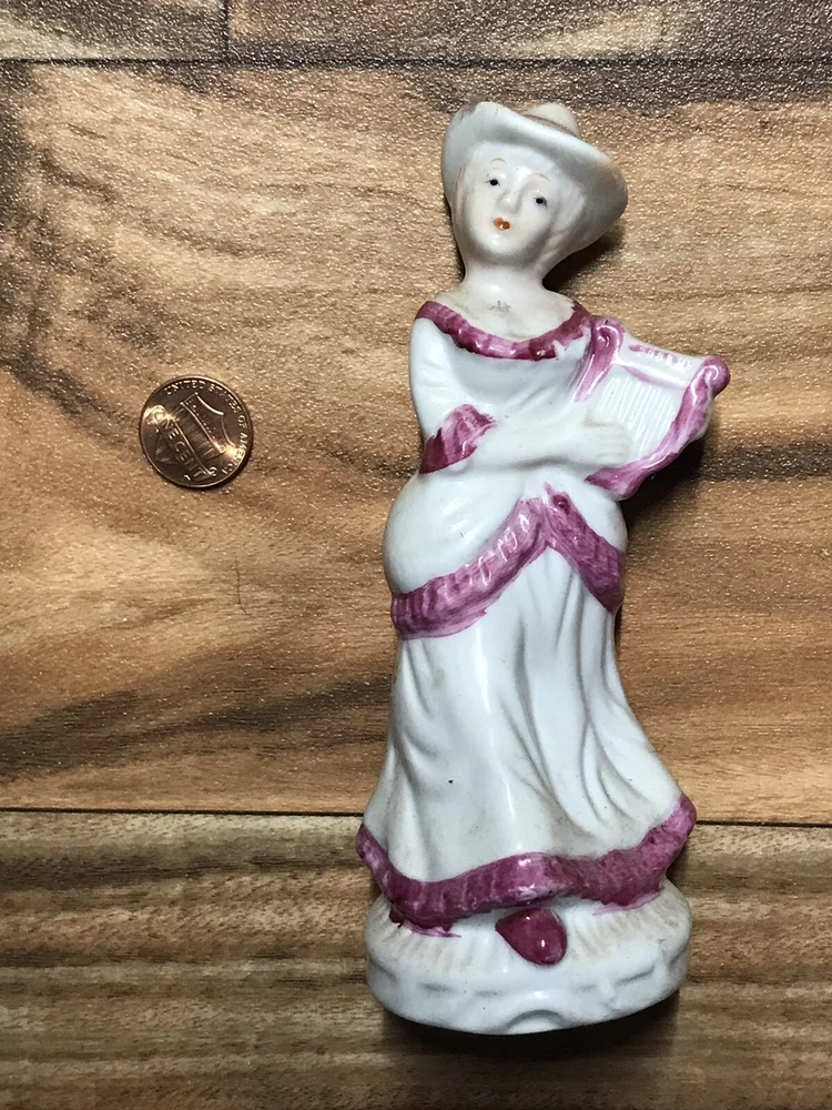 This beautiful vintage figurine statue is a stunning addition to any collection. Crafted from high-quality porcelain, this off-white statue features a lovely lady playing the harp, with intricate details that are sure to catch the eye. The glossy finish adds to the overall charm of this piece, making it a perfect decoration for any room in your home. With a medium size and a ceramic primary material, this figurine is a unique and timeless piece that is perfect for all occasions. The multicolor design is eye-catching and beautiful, while the art nouveau style adds a touch of elegance to any space. Whether you're a collector or simply looking for a unique decoration, this vintage lady figurine is sure to impress.