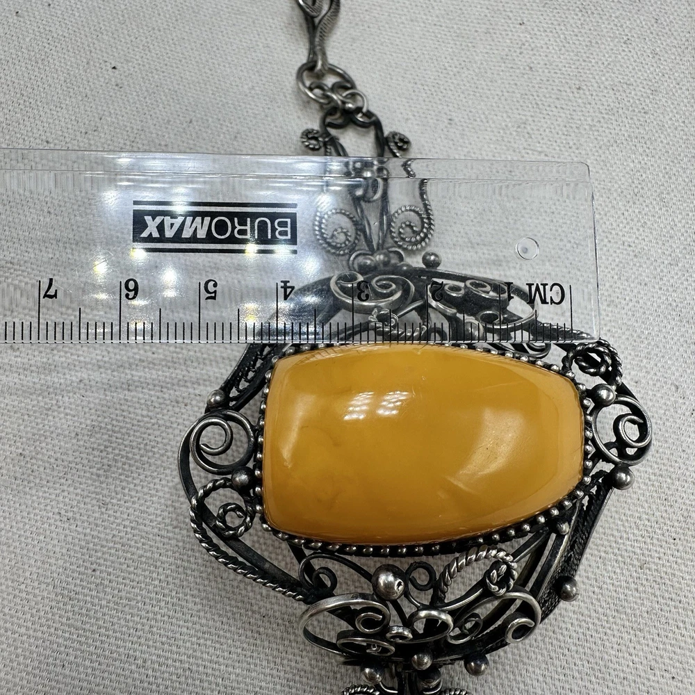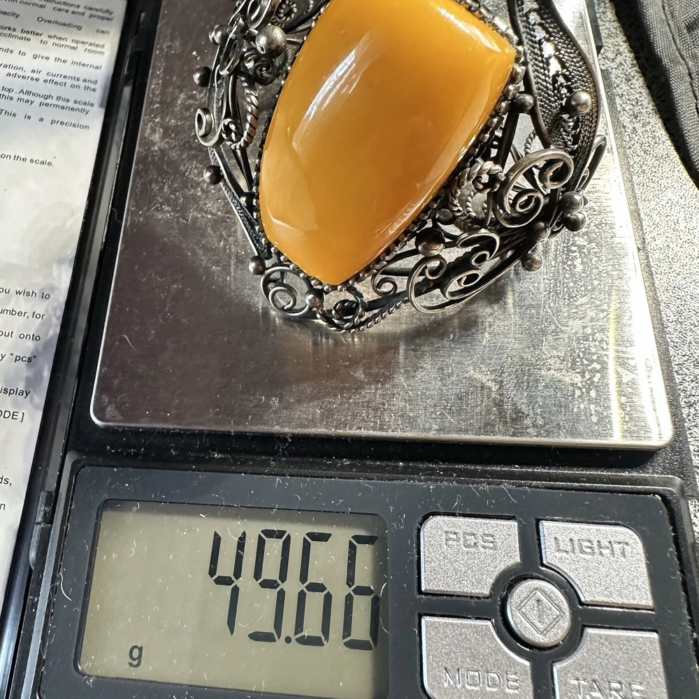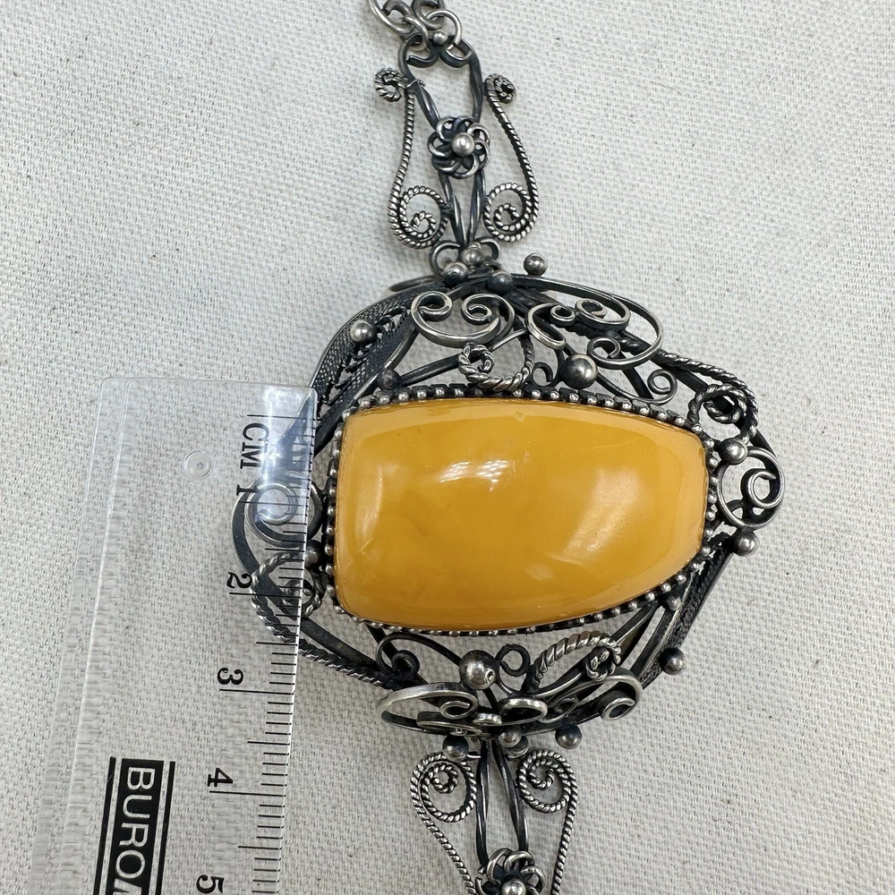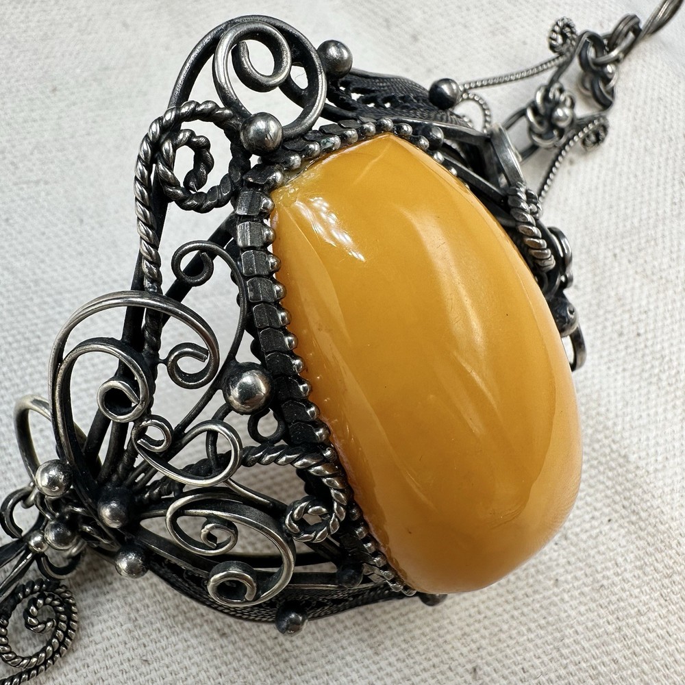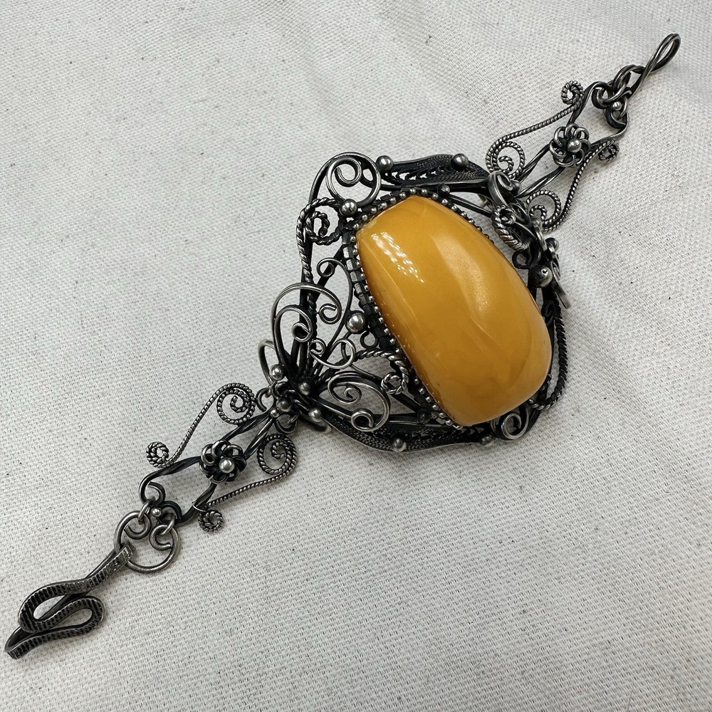 This vintage Baltic egg yolk amber bracelet in yellow color exudes a unique and timeless beauty, perfect for various occasions such as Mother's Day, Christmas, birthdays, and valentine's Day. The asymmetrical shape and huge cabochon main stone add a touch of elegance to the piece, which is a one-of-a-kind item with a Soviet-era charm. The bracelet is made of natural amber, making it suitable for women who appreciate vintage and bohemian style jewelry. There are my other items... https://www.ebay.com/usr/universeofjewelry