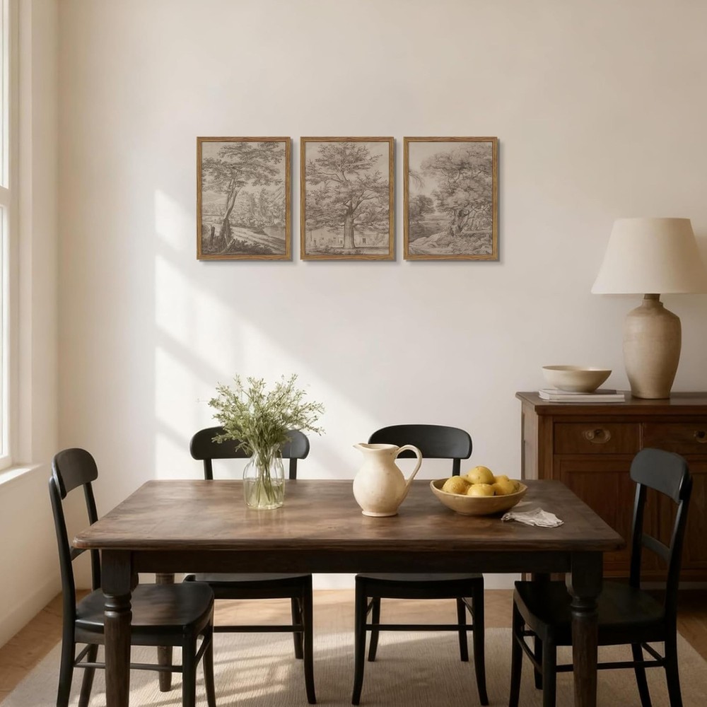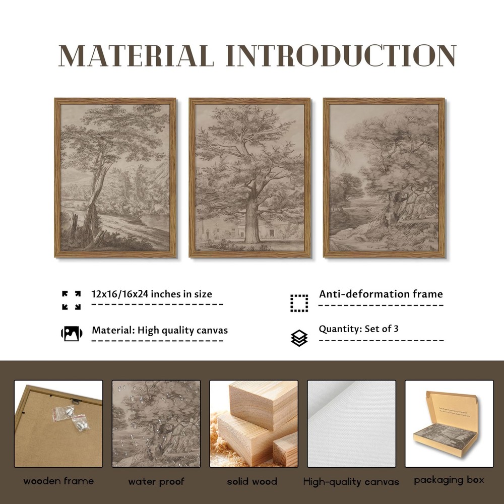 Vintage Landscape Framed Wall Art Set of 3, Neutral Nature Wabi Sabi Canvas Wall Decor Painting, Rustic Retro Botanical Tree Artwork Prints Pictures for Farmhouse Living Room Bedroom 12x16 Inch Product Details Color: Grey Tree Frame Type: Framed Size: 16L" x 12W" Brand: fancynew MPN: Does not apply UPC: Does not apply EAN: Does not apply Product Dimensions: 16 x 12 x 0.2 inches Item Weight: 3.05 pounds Manufacturer: fancynew Date First Available: December 17, 2025 Vintage Neutral Landscape Wall ArtThis elegant vintage wall art blends soft tones and organic scenery into a timeless landscape wall art design. Inspired by classic vintage art and calm countryside views, it brings a soothing presence to any space. Perfect as wall art for living room, bedroom, or hallway, this piece embodies understated beauty and balanced composition found in neutral wall art and wall art vintage styles. Framed Artwork for Walls with Rustic CharmCrafted as a high-quality framed wall art, this piece features a sturdy wood frame that enhances the warmth of rustic wall art and vintage framed wall art aesthetics. The natural frame elevates the artwork beyond simple prints, making it ideal as framed artwork for walls, framed art, or framed vintage wall art in farmhouse, cottage, or modern rustic interiors. Wabi Sabi & Botanical Landscape StyleRooted in wabi sabi wall art philosophy, this artwork celebrates simplicity, texture, and natural imperfection. Subtle botanical elements echo botanical wall art, tree wall art, and vintage botanical wall art, creating a calm visual rhythm. The neutral palette complements neutral landscape wall art, making it easy to pair with minimalist, Scandinavian, or earthy decor themes. Versatile Vintage Landscape DecorDesigned to work beautifully across multiple spaces, this vintage landscape wall art suits living rooms, bedrooms, dining areas, and offices. Whether styled as landscape wall art framed, vintage wall art framed, or part of a curated gallery, it pairs effortlessly with art prints, artwork, and other framed artwork to create a cohesive and inviting wall display. Wood Framed Canvas Ready to DisplayPrinted on premium canvas and finished as a framed canvas wall art, this piece arrives ready to hang with secure hardware. The durable construction ensures long-lasting color and structure, making it a reliable choice for everyday decor. Ideal for anyone seeking vintage art framed, artwork for walls, or refined framed vintage wall art that adds quiet elegance to any room.