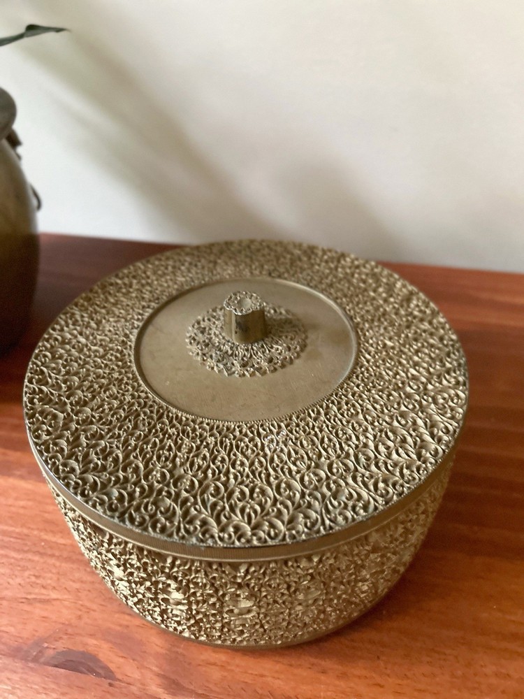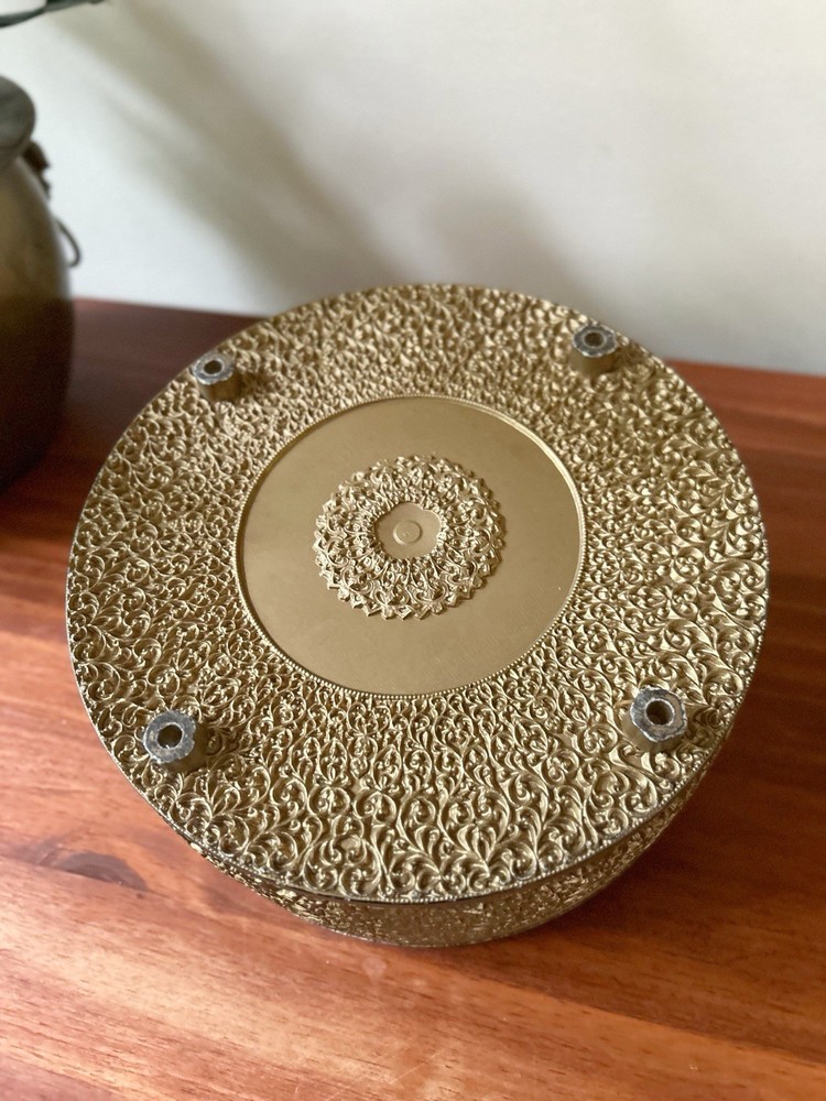 Suitable For: Furniture Room: Any Room Customized: No Style: Hollywood Regency Engraved: No Finish: Gold Collection: Keepsake Boxes Handmade: No Occasion: All Occasions Number in Pack: 1 Original/Reproduction: Original Packaging: Box Material: Plastic Color: Gold Department: Adults Care Instructions: Clean with Damp Cloth Era: Mid 20th Century (1941-1969) Type: Storage Box
