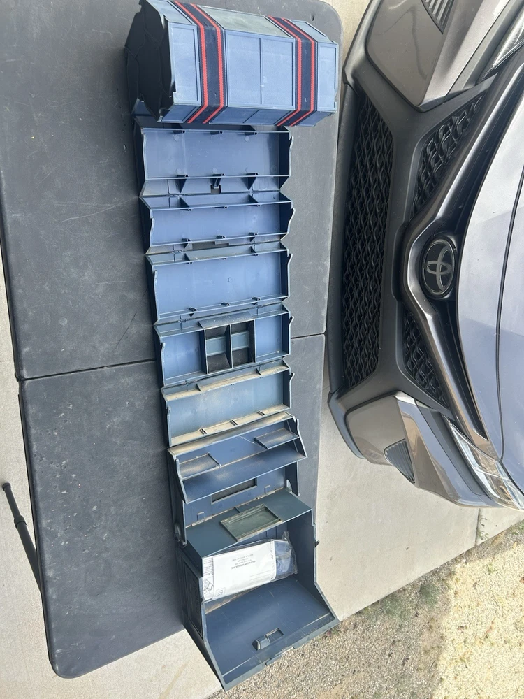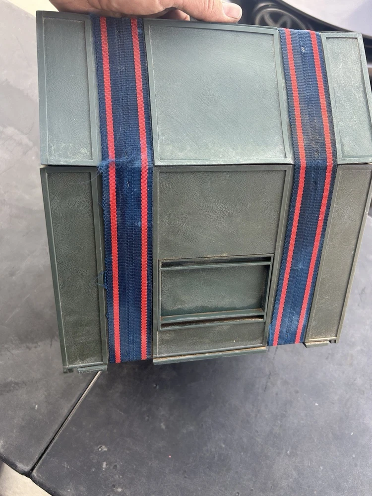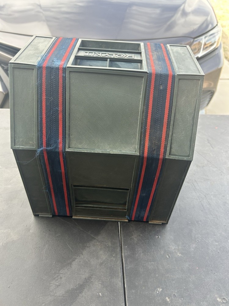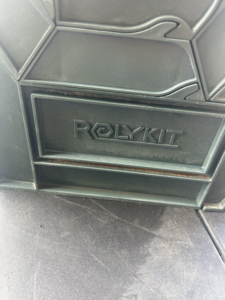 The Vintage Large Rolykit Roll-Up Storage Box Organizer is a versatile container made of durable blue plastic, perfect for organizing crafts, lures, knives, and other items in your home. With its free-standing design and foldable feature, it is easy to use and store. This item hasn’t ever been used, this item still has the dividers in the plastic bag with the manuals. As seen on TV, this original Rolykit Roll-Up model is 10.75 inches in length, 12 inches in height, and 10.5 inches in width, providing ample space for your storage needs. Whether you need to organize jewelry or other items, this large storage box is a practical and stylish solution for your home.