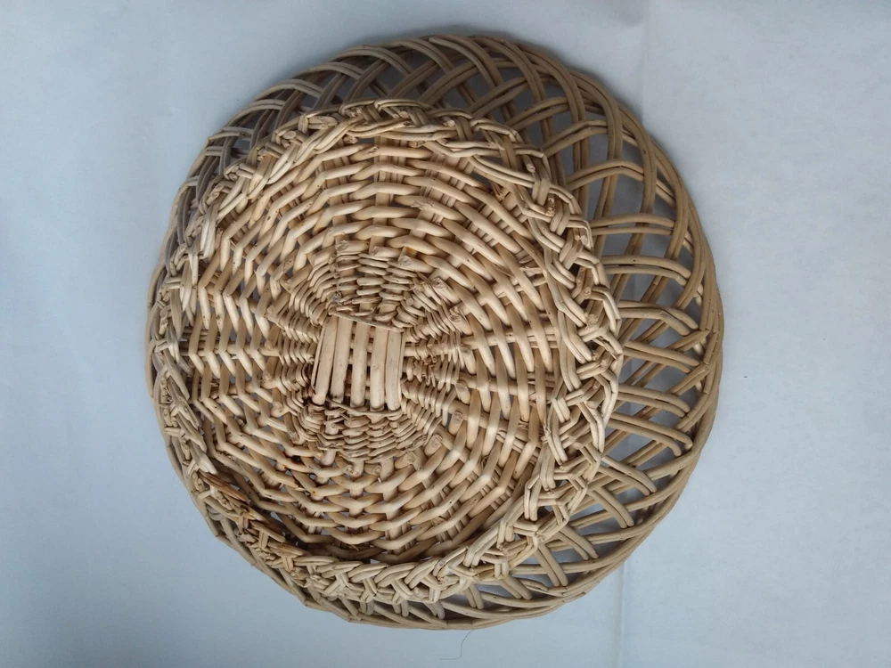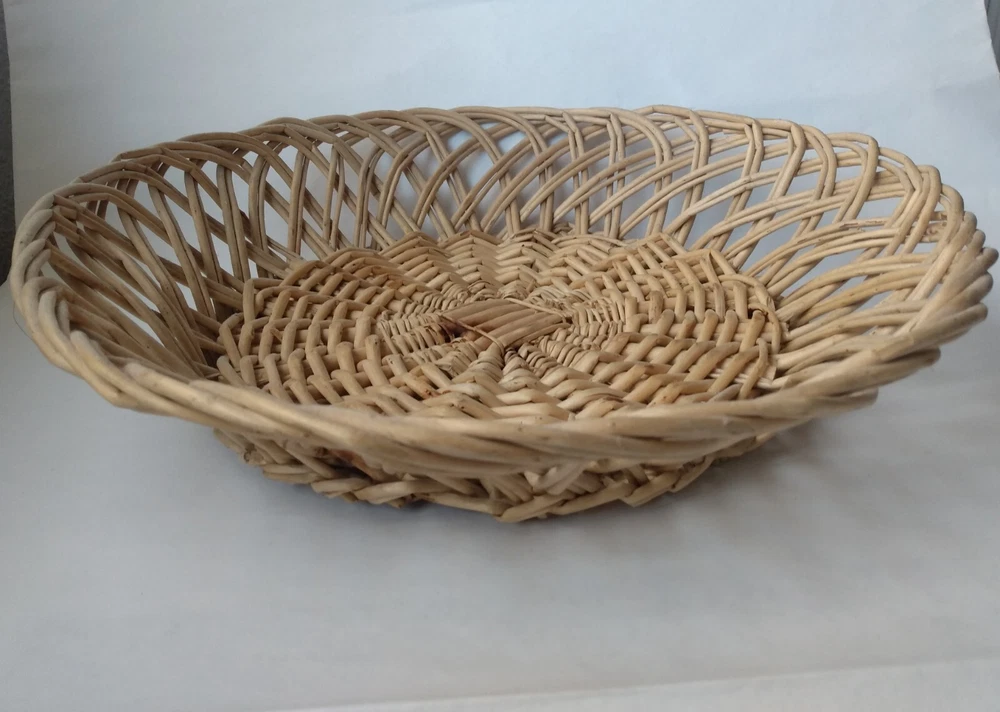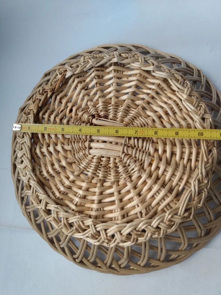 Add a touch of vintage charm to your home decor with this beautiful large round wicker tray. This platter boasts a beautiful beige color and intricate woven rattan design that is both stylish and functional. Measuring large in size, it can be used as a shallow basket to store small items or as a decorative centerpiece to showcase your favorite collectibles. Its unique shape and material make it a perfect addition to any room in your home, and a wonderful gift for those who appreciate the beauty of handmade crafts. This basket is about 3.5 inches tall and an overall diameter of 15 inches. The inner flat portion of the basket has a diameter of 10 inches.