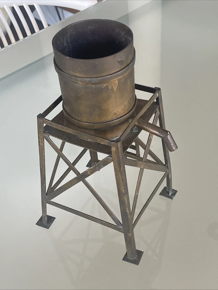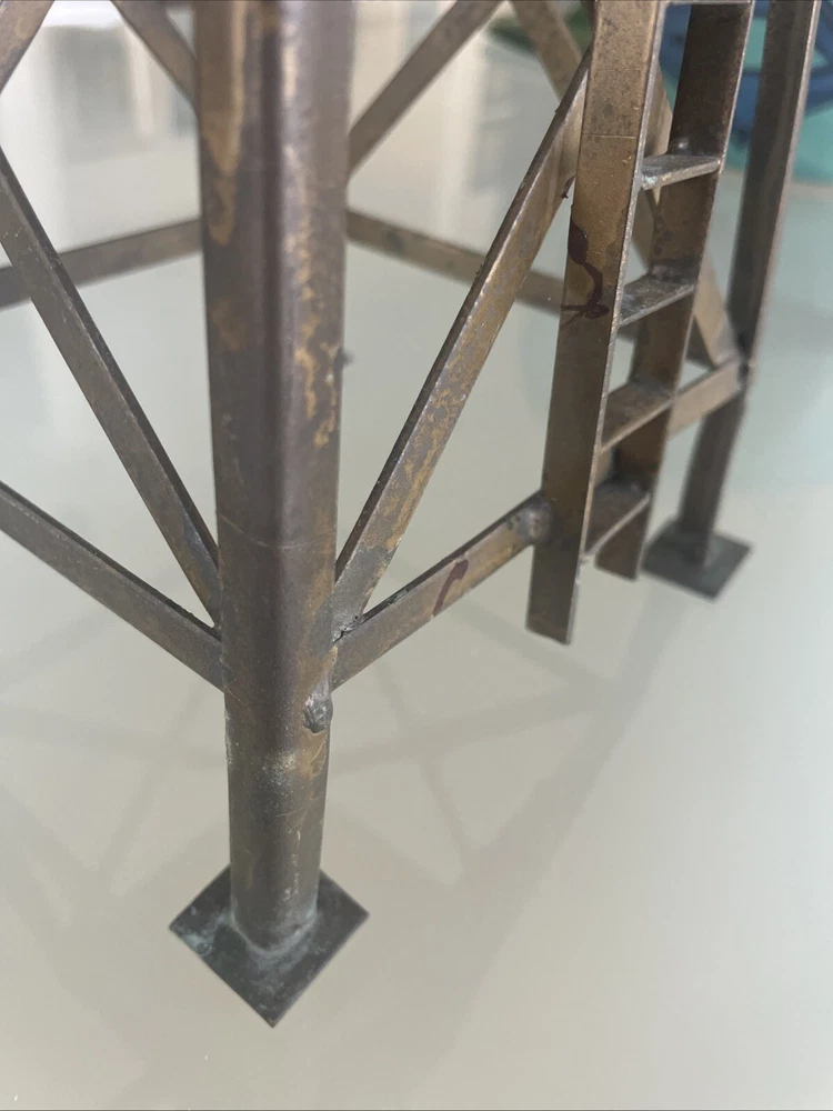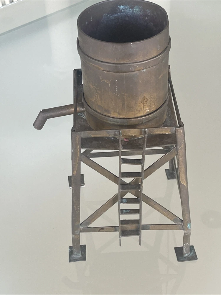 This vintage large scale metal toy railroad water tower is a must-have for any collector of railroadiana and trains. Measuring at 11" x 7", it is a unique piece that is sure to catch the eye of any enthusiast. Made in the United States, this water tower is a great addition to any collection. Excellent vintage condition! Its intricate details and vintage charm make it a rare find, perfect for those who appreciate the history and nostalgia of railroad toys. Add it to your collection today and enjoy the beauty and craftsmanship of a bygone era.