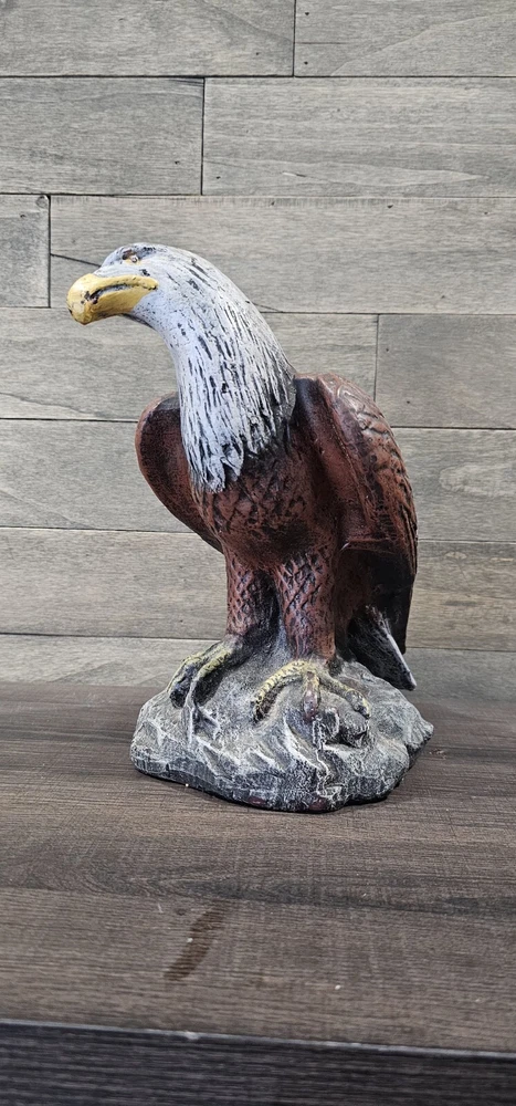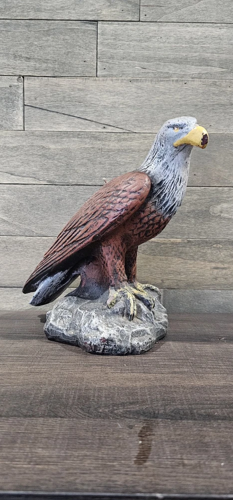 This vintage American Bald Eagle candle is a stunning piece that will add a touch of patriotism to any room. The candle is made of wax and features a sculpted design of an eagle with its wings spread open. Measuring at 12.5 inches in length, 9.5 inches in height, and 4 inches in width, this large candle is perfect for display on any occasion. The candle comes in its original box and has never been burned, making it a great addition to any collection of decorative candles. The eagle design is perfect for those who appreciate patriotic themes and the 1970s style of the candle adds a unique touch. Handmade and unscented, this candle is a must-have for any collector of vintage decor.