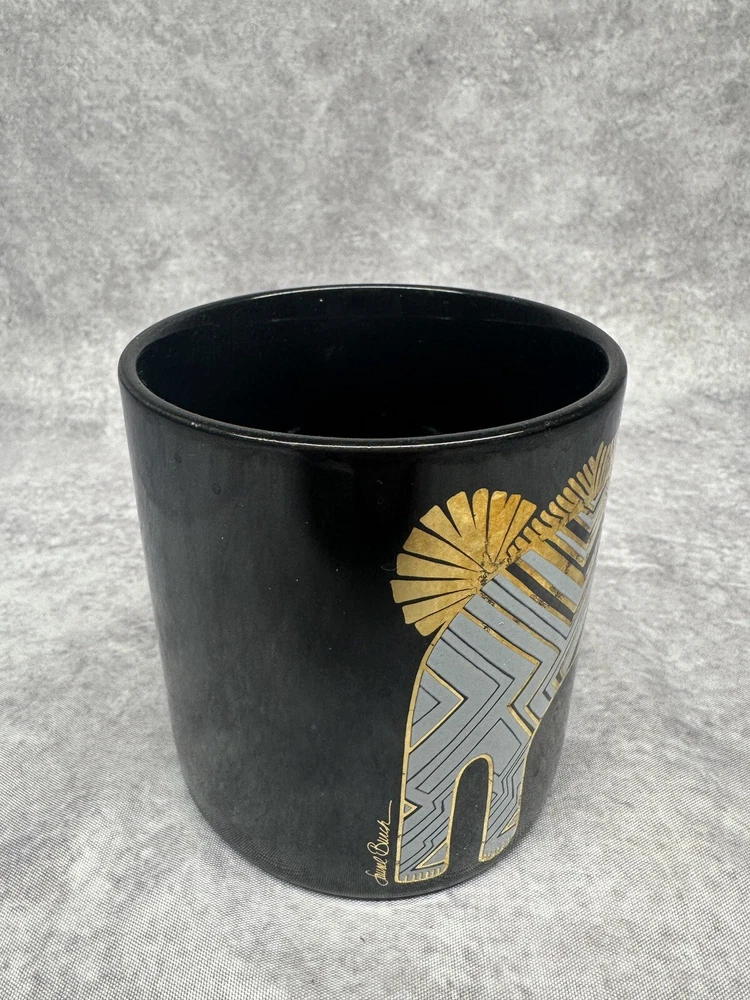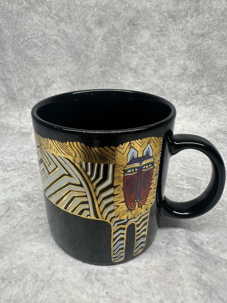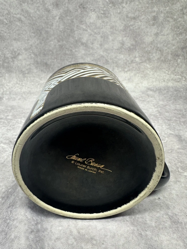 This vintage Laurel Burch art coffee mug is a unique addition to any collection. The black ceramic mug features a stunning gold lion pattern that adds a touch of elegance to your morning coffee routine. With a 12 oz. capacity, this mug is perfect for coffee lovers who enjoy a larger cup. Made in Japan, this coffee mug is a great conversation piece for anyone who loves art and collecting unique items. The mug is part of the Collectibles category and is perfect for adding a touch of vintage charm to your Kitchen & Home or Dinnerware & Serveware collection. Get this one-of-a-kind Laurel Burch coffee mug today and start your mornings with a touch of luxury.
