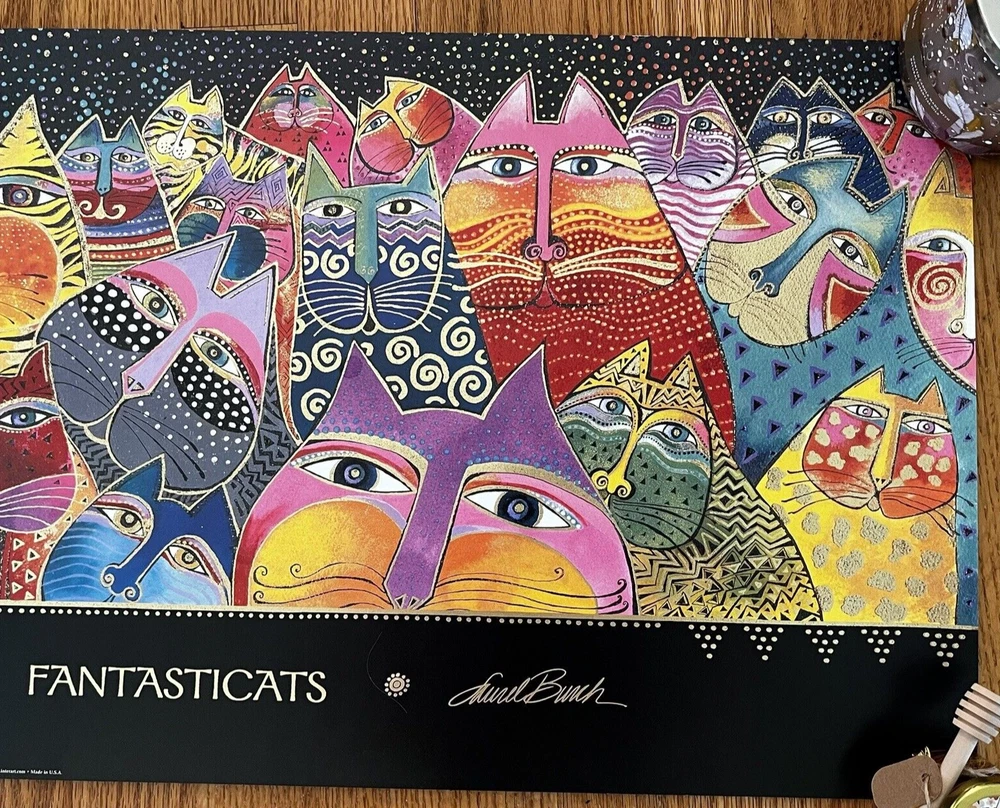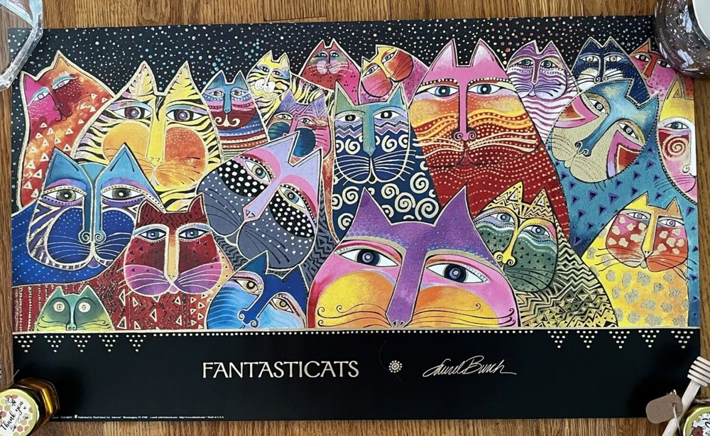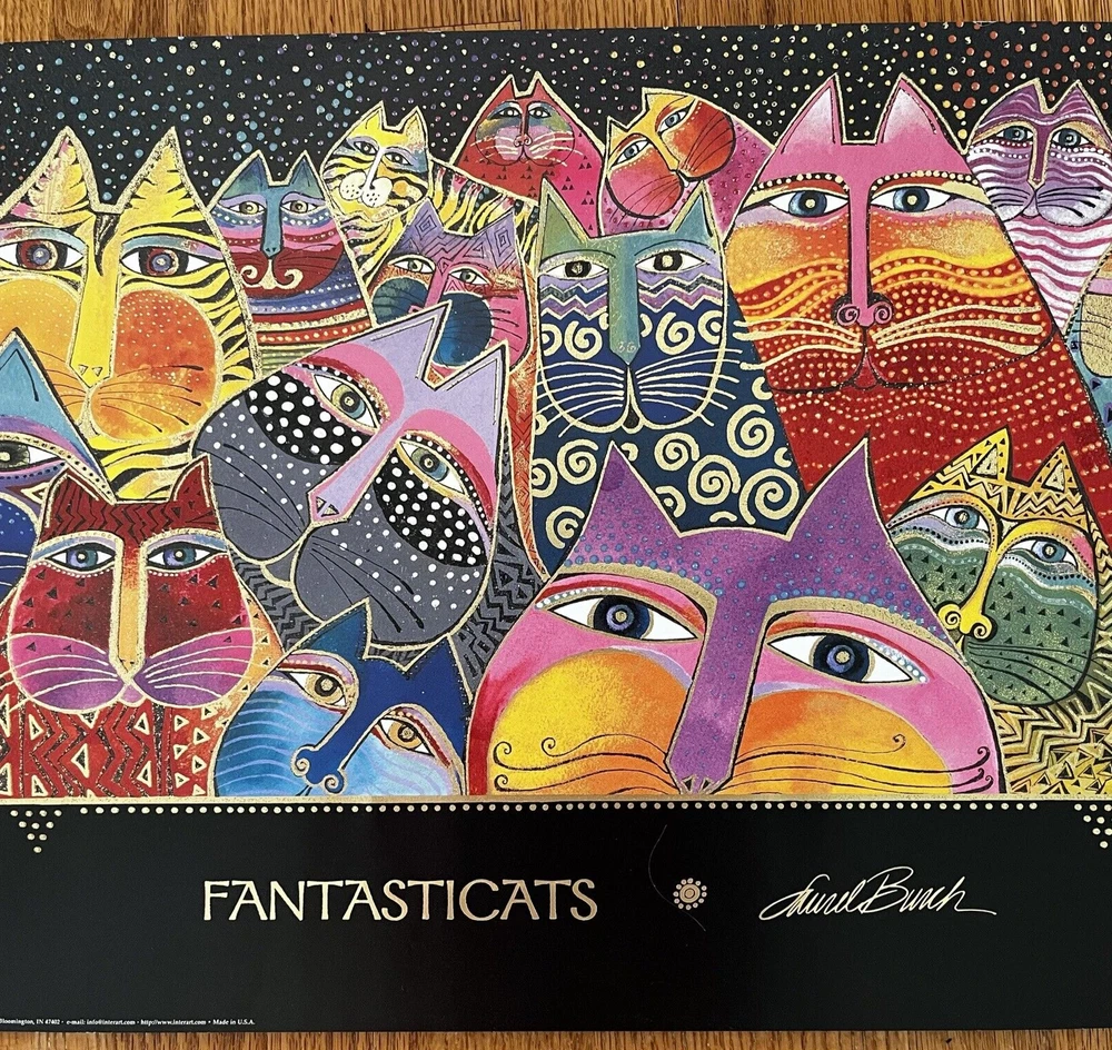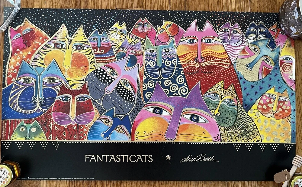 Vintage Laurel Burch Art Poster "Fantasticats" Print 14x24” Bright Colorful RARE Never used - kept rolled up in the container. This is printed on heavy paper. Thanks for looking!