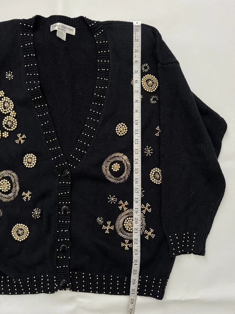 *** It has some loose beads but nothing mayor*** It is in very good condition! Could fit better to size L/XL, it does stretch. Details and measurements are in the photos Style: Christmas, holidays, grandma core, vintage, Witchy, Whimsigoth No returns or refunds Pet friendly home Thank you #114