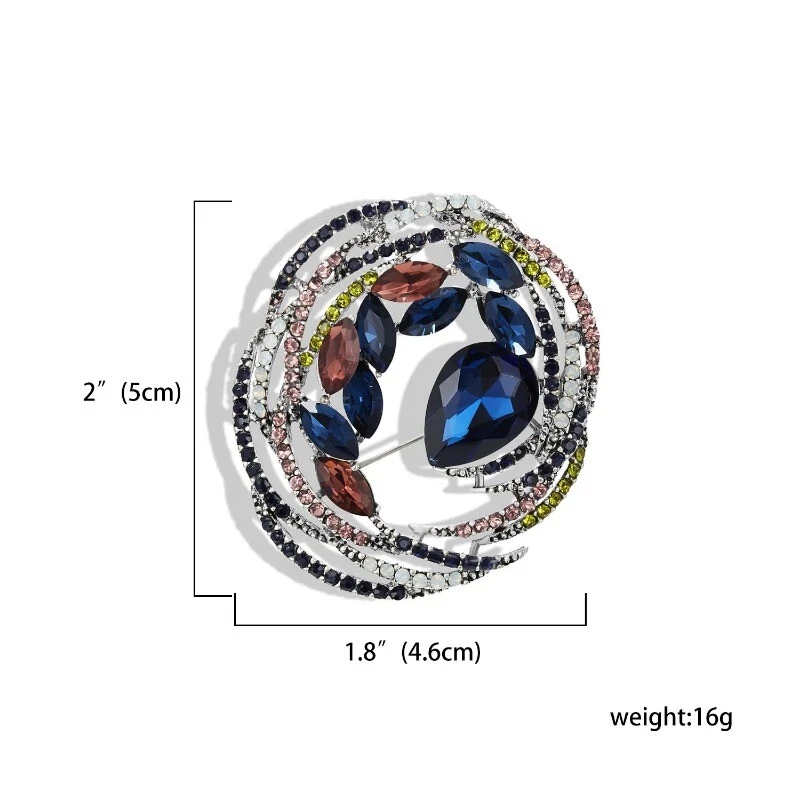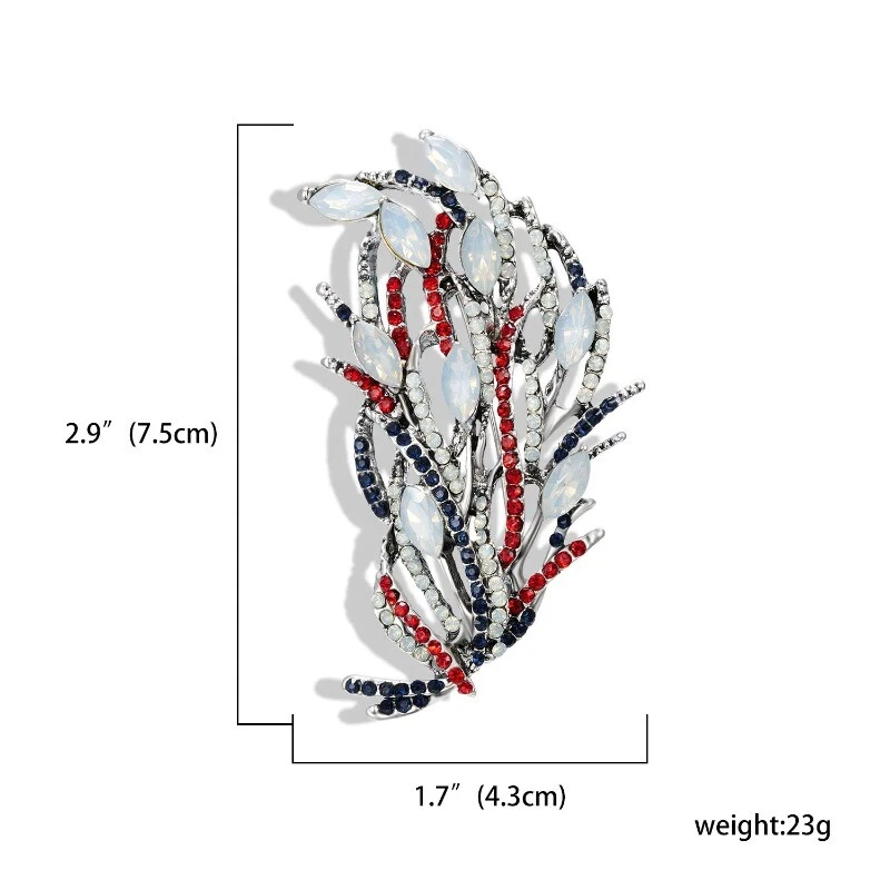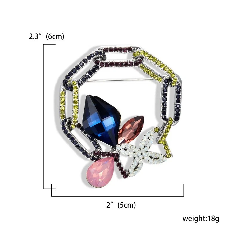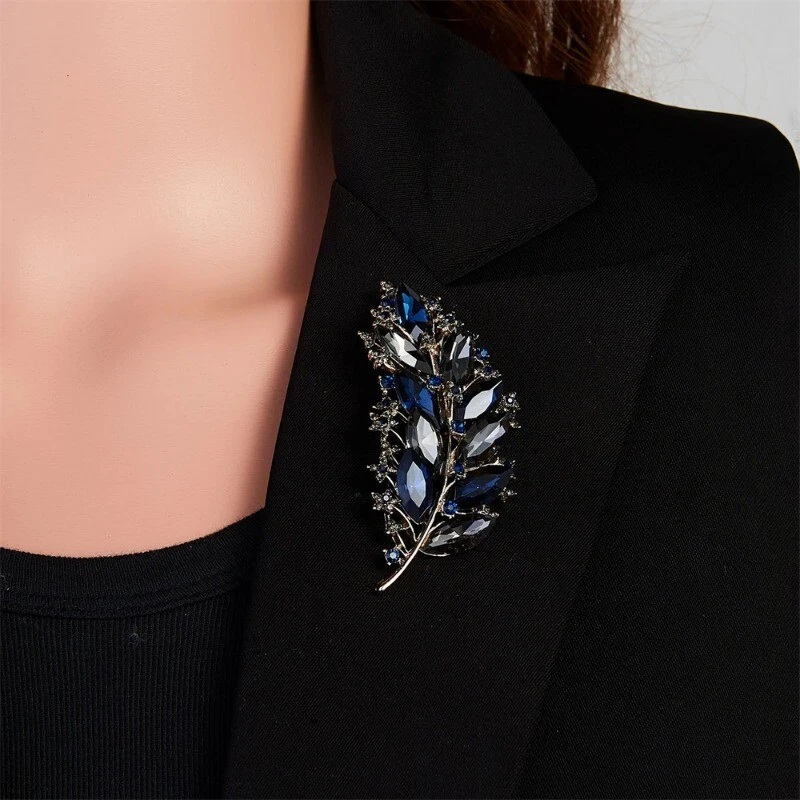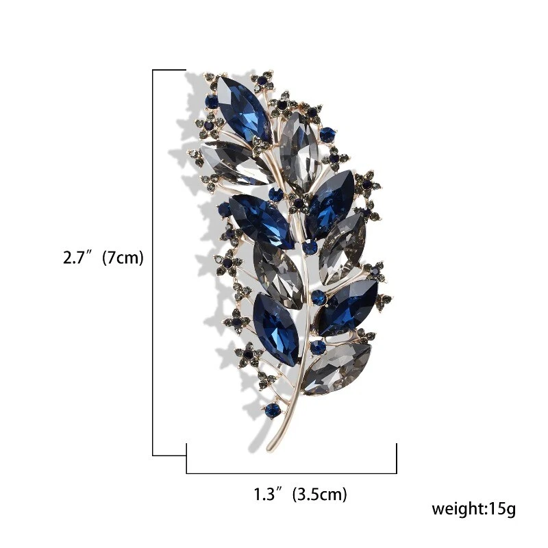 Vintage Leaf Geometric Crystal Brooches for Women Full Rhinestones Pin Jewelry