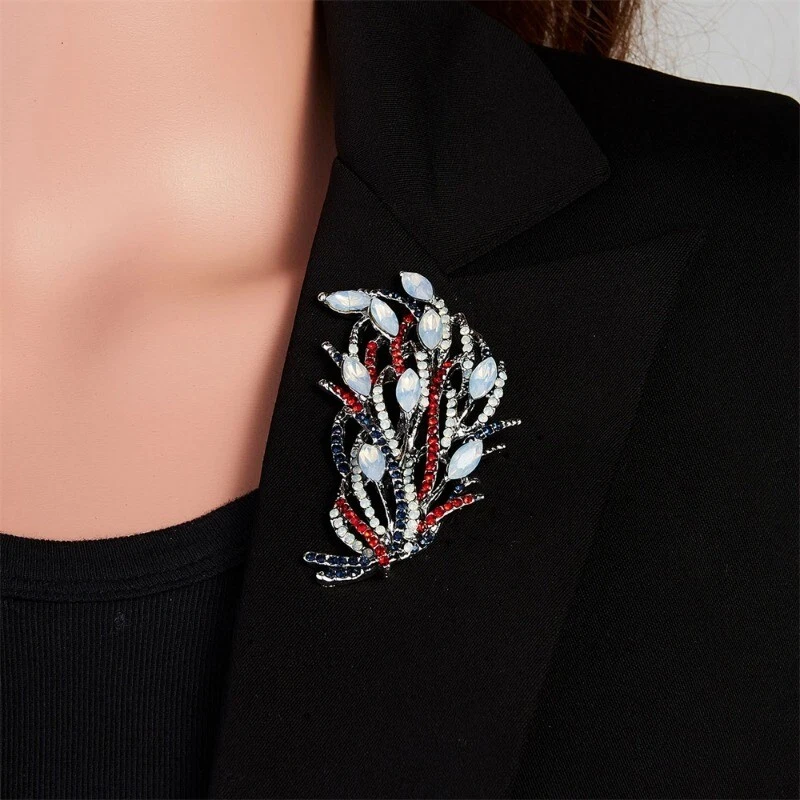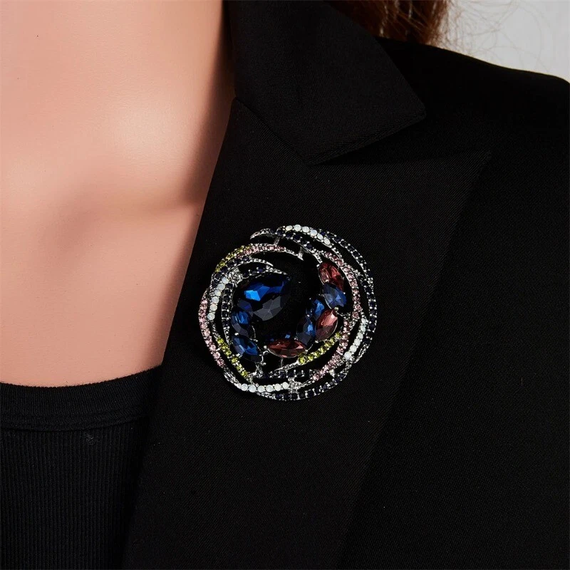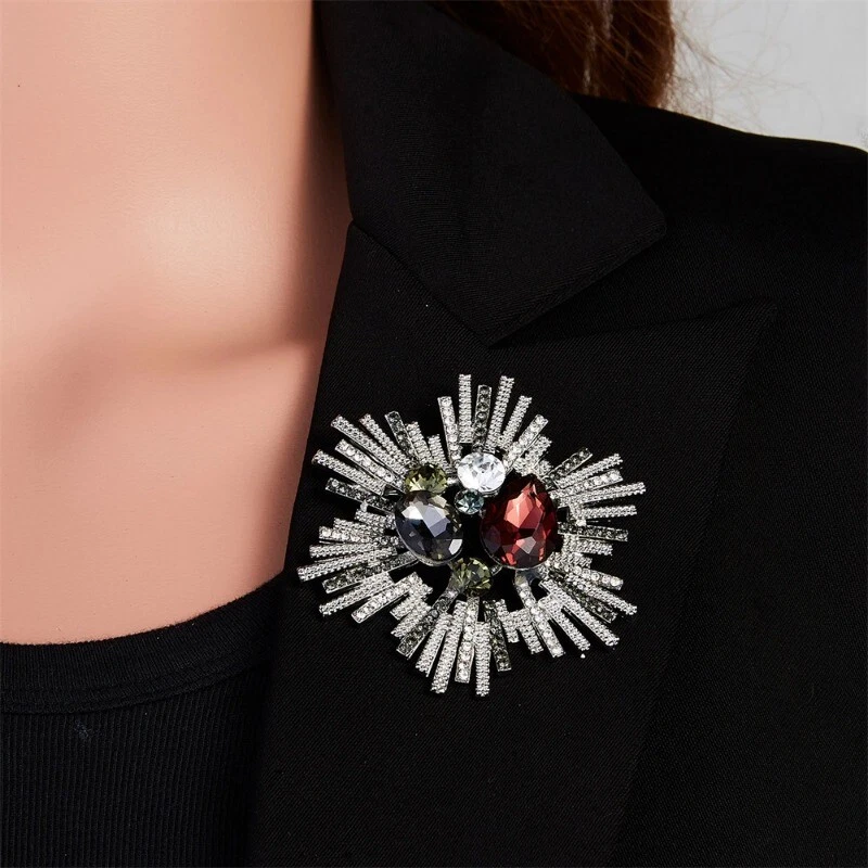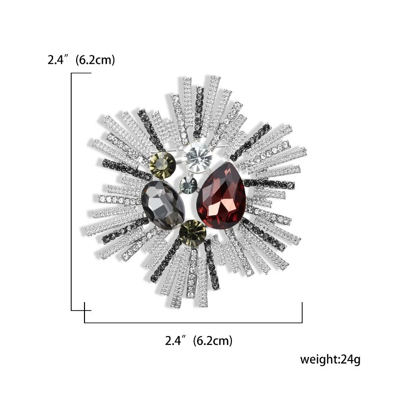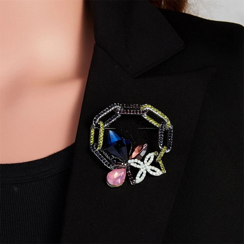 Vintage Leaf Geometric Crystal Brooches for Women Full Rhinestones Pin Jewelry