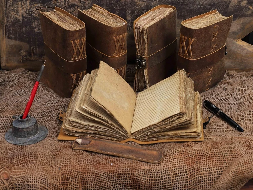 VINTAGE LEATHER JOURNAL: A Perfect Journal for Women and Men. This Vintage Journal is Made from Genuine Buffalo Leather which is naturally tanned with oils and is chrome free. As these Daily Journals are made with genuine Cruelty free leather so each vary in look and shade producing a unique item. JOURNAL NOTEBOOKS WITH STURDY BINDING: Belt Wrap around closure with Antique Bras lock to keep the papers of the journal safe when not being used. A sturdy hand stitched binding to make sure that no paper comes out loose. PERFECT GIFT: This vintage-inspired journal serves as an exquisite and timeless gift suitable for a diverse range of recipients, including women, men, teen girls, boys, and cherished grandparents. A lovely treat for your loved ones for an anniversary, birthday or graduation present, or for someone starting a new adventure