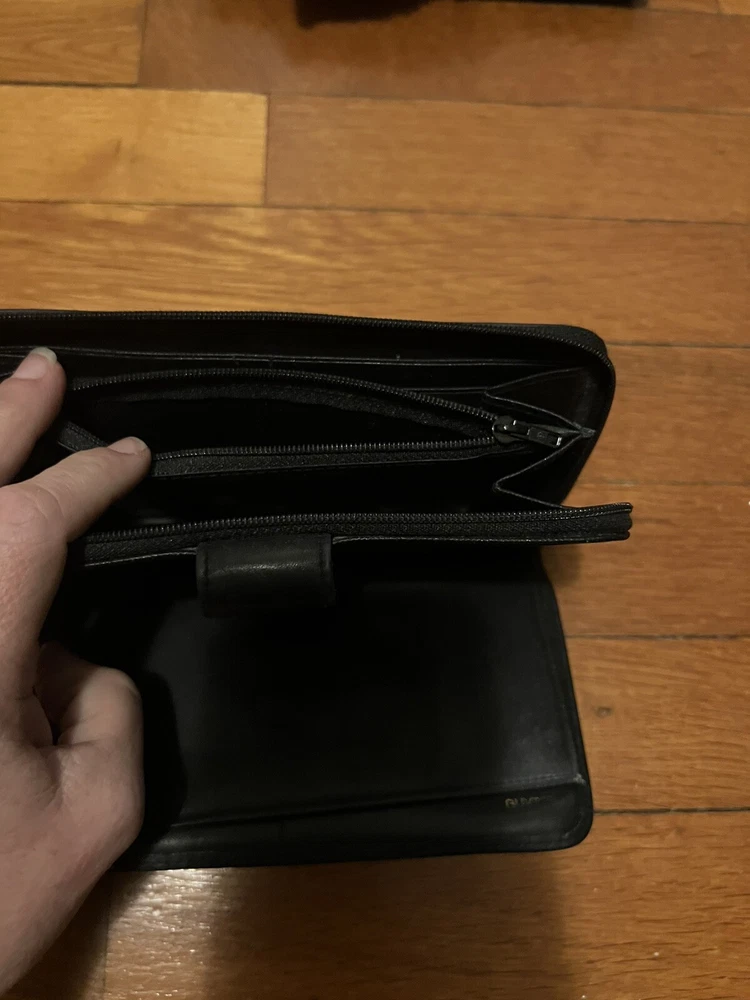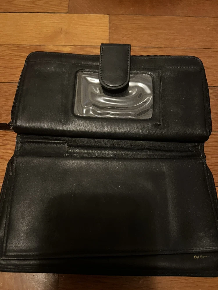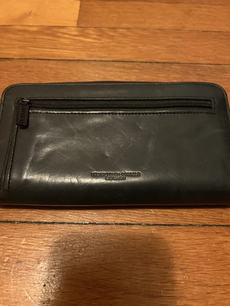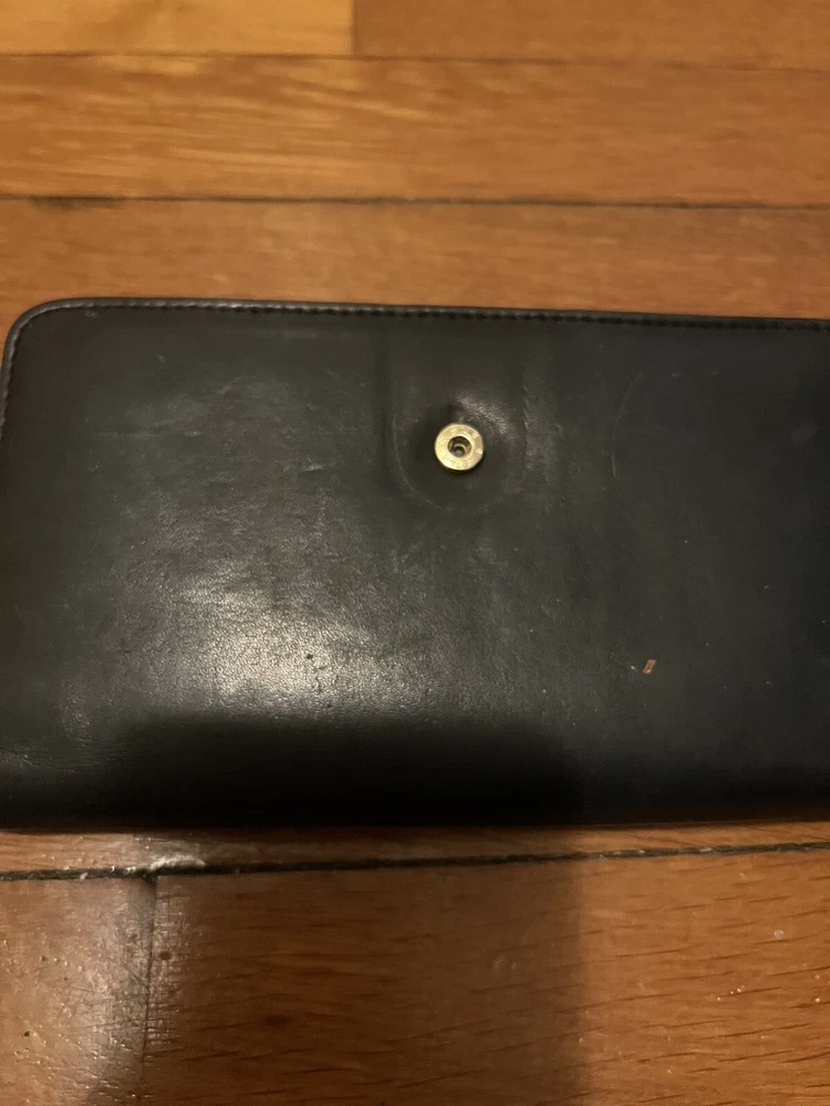 The Vintage Leather Button Women’s Wallet is a black wallet made of leather with a button accent. It is a vintage wallet designed for women.