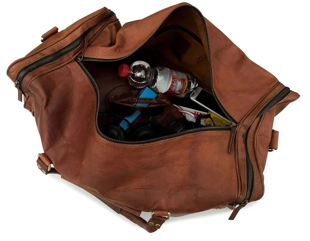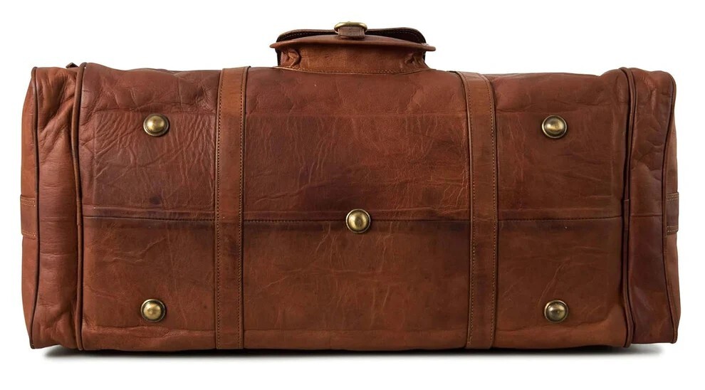 1. This vintage leather duffel is perfect for travel, gym, or everyday use! The full-grain goat leather feels premium and ages beautifully, while the spacious interior and multiple exterior pockets keep everything organized. The included leather journal adds a nice touch—great for notes or travel memories. Sturdy yet stylish, the buckles and stitching are solid. Highly recommend for anyone wanting a durable, classic bag that only gets better with time. Love it!