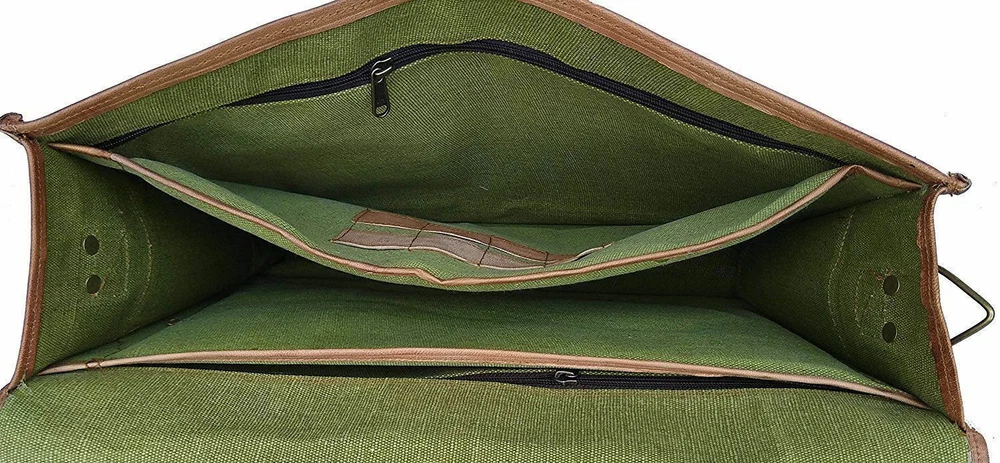 100% Genuine leather Products | Lining 100% Canvas I (MADE IN INDIA) Buy with confident 30 Days Return Policy Description Handmade Goat Leather Satchel Laptop Shoulder Bag QUALITY LEATHER BAG Each bag is individually made using goat leather by experienced crafts people .The bag gets better and better with the time as the leather softens and deep-ens in color. The tonality color of each bag might vary in accordance with the low and high temperatures from the heart of The Thar desert.The leather does not receive any chemical treatment. On the bags a special vegetable oil is applied to give more tonality to the dominant brown (light and dark) color of the bag also making it more resistant to the water.Each bag has its charm and style and a very special earthy smell that will assure you it’s real leather.Its lightness, flexibility and durability will not make you regret your purchase. HANDMADE BRIEFCASE SATCHEL BAG FOR STUDENTS, OFFICE WORKERS AND COMMON PEOPLE Features Green canvas fabric Internal 2 compartments and 2 zipper Thick adjustable strip (See the picture for more detail) Strong, light-weight goat leather, tanned without the use of chemicals Leather softens and darkens with use Color and texture of the leather varies Natural real leather smell, just like a luxury car or lounge suite Solid brass buckles and fixtures - will last for years Has a wonderful natural look, and feel Each bag is uniquely individual due to slight color and marking variations on natural leather Brand New Handmade Leather Bag without tag Payment Using Paypal is the simplest and easiest way to pay, and is the way we prefer, but if you have a reason that you don't want to use Paypal that's OK, we will accept credit card payments and bank deposits, please contact us to arrange these after purchasing. we know that you will want to get your goods sent quickly so please remember to make your payment quickly after purchase, and we will dispatch within one business day after you have made your payment. if you need a bit of time to make your payment, that's also ok, please contact us to advise how long you need, we are happy to hold your goods for up to week before you pay. if you are purchasing from overseas,please be aware that we can only accept Paypal. Shipping Combine shipping (Heavy discounts) available Tracking details are availableExpress delivery (3 days) available on minimal extra charges, please write to us Shipping Partners - DHL, FedEx, UPS etc and like other International Courier Service providors onlyShipping may be influenced by holidays, public events and/or any othe uncertainties. We can not guarantee the exact arrival time.Please understand we could not control how the customs work at destination.If you are very care about the seemingly shipping time, please provide your contact numbers. We ensure to keep it confidential. Terms Of Sale Returns accepted Please write to us before returning the item Buyer should contact us within 20 days of receiving the item Refund will be given in refund or replacement on buyer's choice. Return shipping will be paid by the buyer Item must be returned in its original condition Please write to us for any clarification on RETURN POLICY About Us Namaste........ We are manufacturer and wholesaler of leather goods and specialized in Office Briefcases, Office Bag, College School bags, Travel Bag, Handbags, Purses, Wallets, leather journals and diaries and many more. We use quality leather of Goats and Camel. We offers customize designing and wholesale prices for bulk order. For more details, please write to us. Please visit our store and have a look of our other items If anything unanswered, please do write to us. Happy Shopping!! Please contact us via eBay with any questions you have about our products. We normally respond to any questions within one or two working days. Feedback & DSR If there is any problem with product or delivery, please contact us BEFORE leaving the feedback and below 5 star rating. 100% customer satisfaction is our goal. Your 5 Star rating will help us to reduce cost in your next purchase