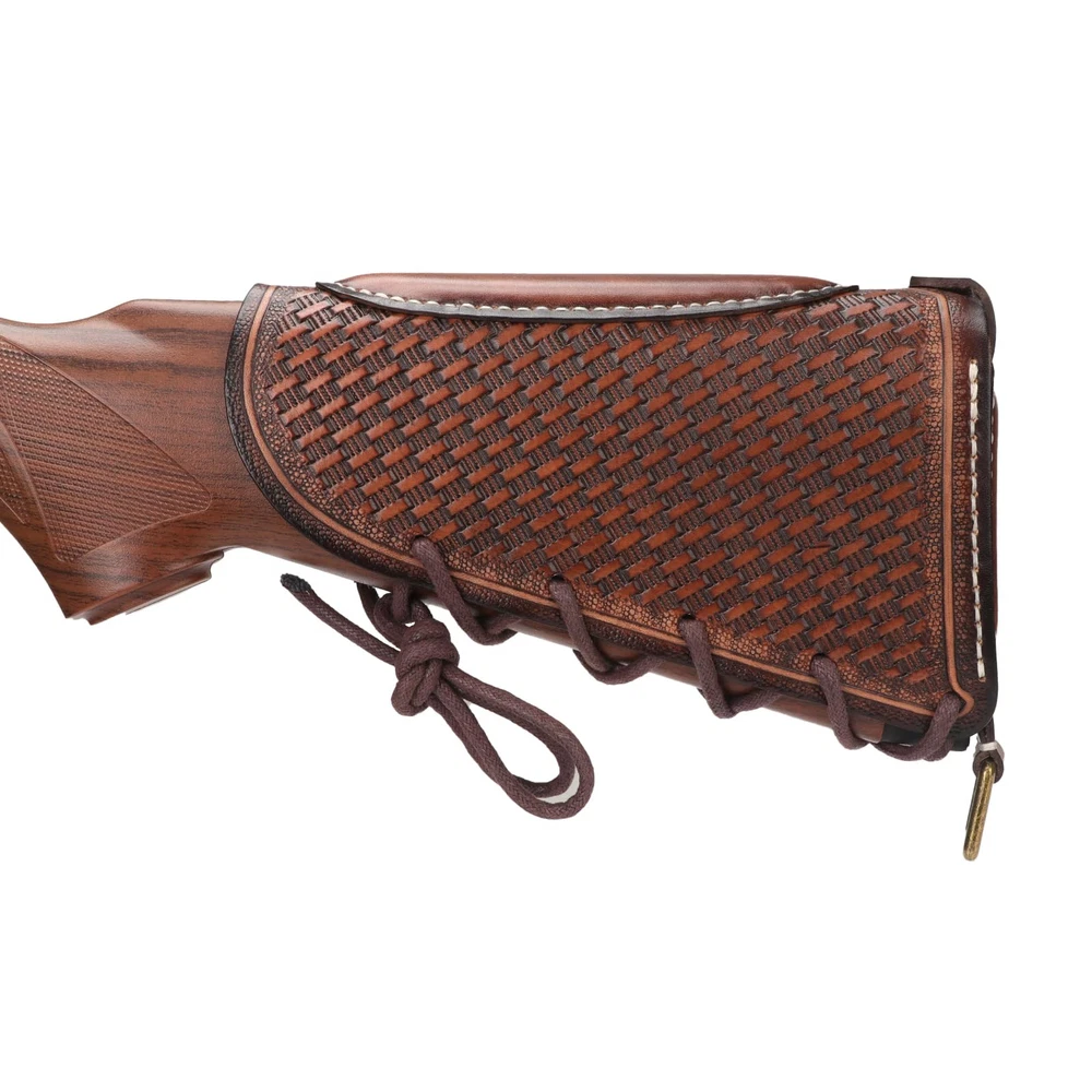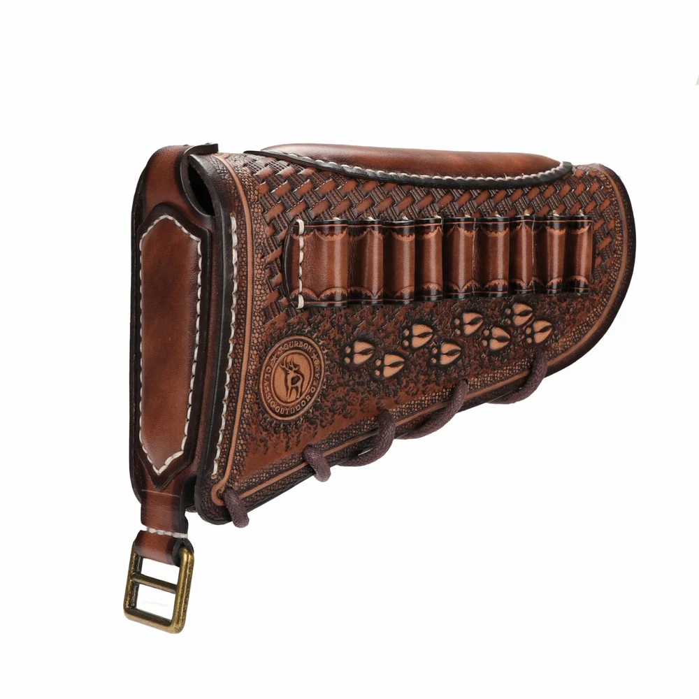 Leather No Drill Cheek Rest: cheek riser is made from vintage leather, and has a cheek pad that will help you align your eyes with the scope Extra Cartridge Holder Slot: Designed to hold rifle or shotgun shells, comes in handy when you are hunting and have to gain quick access to extra ammunition Strap On Cheek Rest Pad: The adjustable strap snugly holds the cover in place but allows for slight differences in stock shape Internal Neoprene Padding: Comes with internal paddings that can be put on or removed, and the padded neoprene cushions can greatly reduce the impact on the shoulder when shooting Metal Slide Buckle: The buckle allows you to attach the matching sling, so you don't need to drill into the wood of your rifle or shotgun.