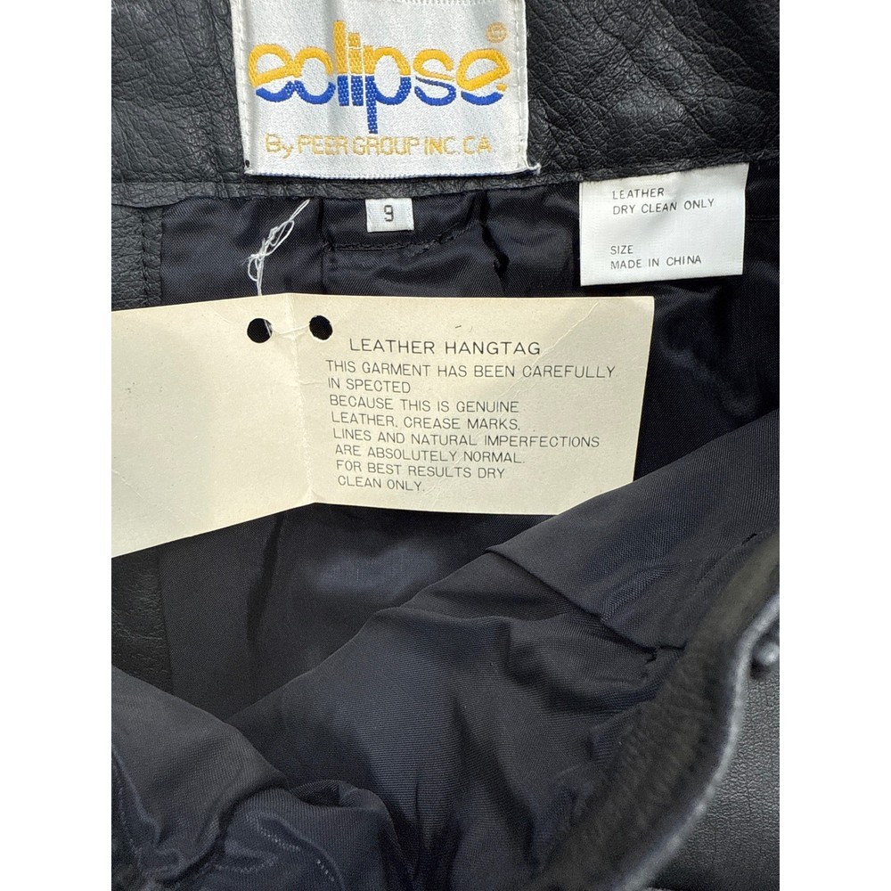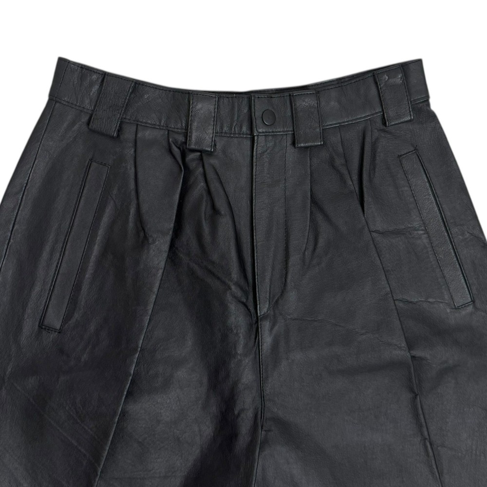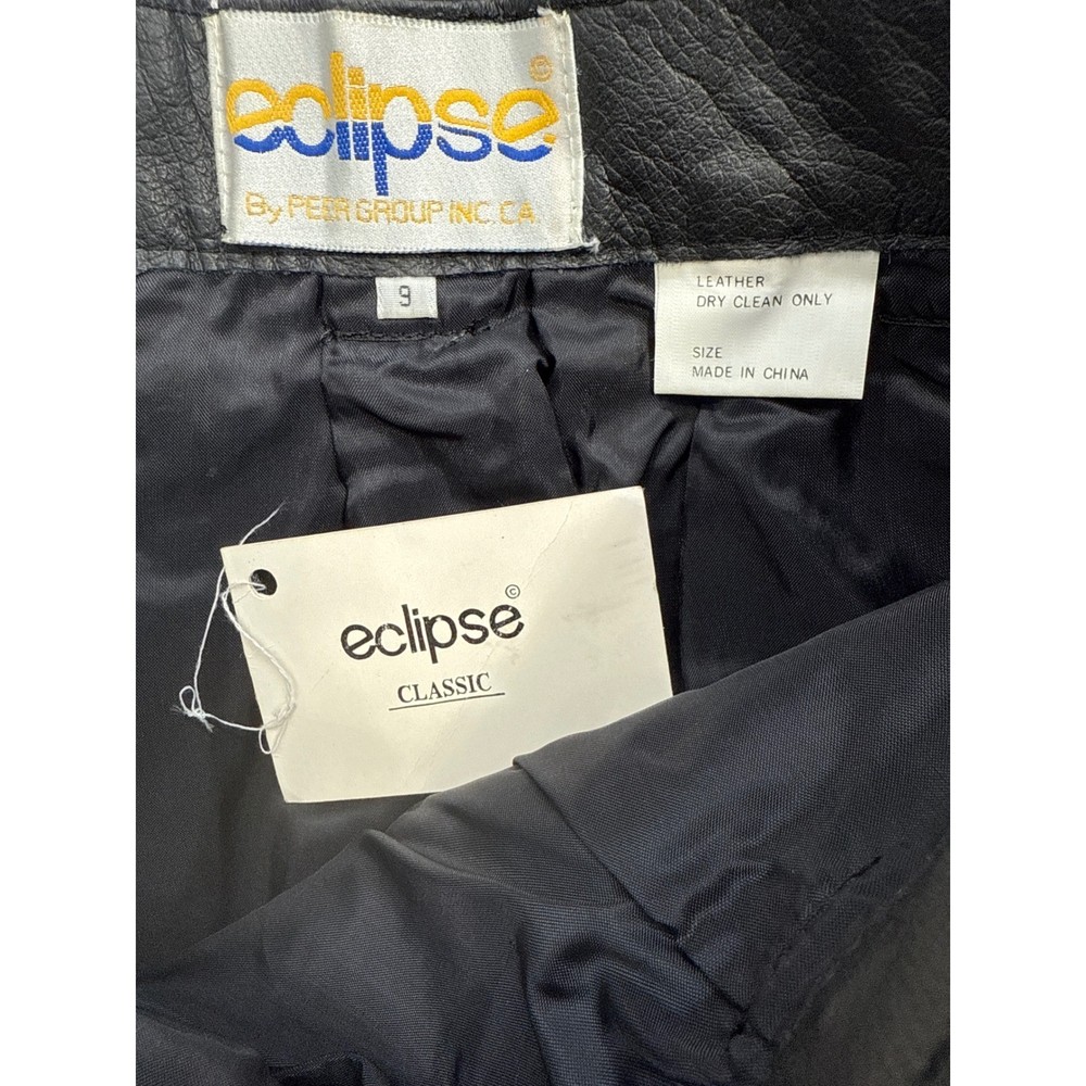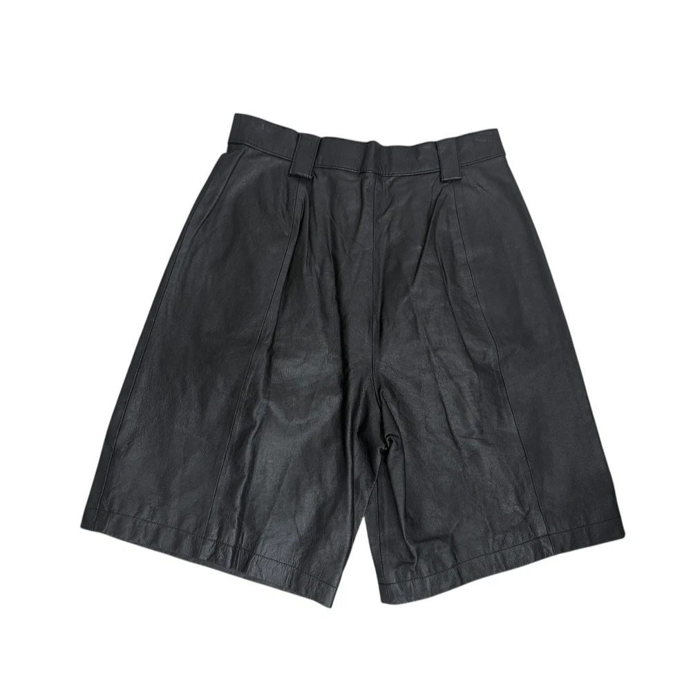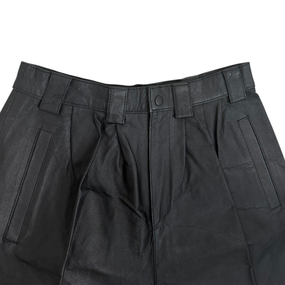 Vintage Leather Pleated Long Wide Leg Shorts Eclipse Size 9 Lined Pockets NEW Condition: New, Tag included but not attached (tag will be stored in pocket) No Damage or Flaws Measurements in inches Taken While Garment Was Laying Flat: •Waist: 13.5 •Rise: 13.5 • Inseam: 9 • Leg Opening: 12.5 *These measurements were personally taken and are approximate Measurements are provided to help determine fit, it possible please compare to something you already own All photos are of the actual item you will receive (stock photos aren't used) Your purchase will ship promptly *j30 Eclipse By Peer Group Inc black leather culottes. These stylish culottes feature a pleated front and a wide-leg silhouette for a flattering and modern look. The premium leather construction offers a luxurious feel and lasting quality. Perfect for a chic day out or a sophisticated evening ensemble. Style: Culotte Department: Women Material: Leather Occasion: Casual Accents: Pleated, Button Pattern: Solid Features: Lined, Pockets Fit: Classic Front Type: Pleated Keywords: leather culottes, black pants, pleated trousers, wide leg, premium leather, designer pants, fashion culottes, chic style, modern silhouette, day to night, business casual, edgy fashion