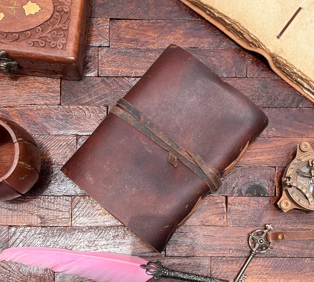 The Eye Leather Journal is a luxurious vintage travel journal featuring an embossed eye and moon design on the leather cover. Handmade in India, this limited edition journal is personalized and perfect for those looking to document their travels in style. The 1st edition of this unique journal is ideal for those seeking a special and distinctive writing experience. Howling wolf leather Journal | embossed wolf, vintage journal | travel journal | blank spell book of shadows, grimoire journal. Active ★ Howling wolf Journal This Journal Is Made From A High Quality Leatherette With A Heart Embossed Finish And Vintage Looking Paper ★ DIMENSIONS :- The Journal Is Available In 2 Perfect Sizes. 8 Inches" x 6 Inches. 7 Inches" x 5 Inches. ★ PAPER :-The Inside Of This Journal Is Handmade Decal Edge Paper That Looks Vintage And Well Stitched Whose Number Is 200 (Please Count Both side) If You Want White Plain Paper So Please Select Right Paper Option There Are Two Options Available. ★ HANDCRAFTED FROM GENUINE LEATHER: Each Journal Is Specially Designed And Handmade From Premium Leather. Artful Hand Stitching To Create A Timeless Space For Your Thoughts. ★ TELL YOUR STORY :- We Designed This Classic Leather Journal As A Time Capsule For Your Thoughts. Capture Your Important Memories, Accomplishments (And Failures), Life-Changing Moments And Evolving Dreams As A Keepsake To Reflect Upon In Years To Come. ★ THE PERFECT GIFT :-Quality You Can Trust: High-Quality Craftsmanship Makes This An Essential Tool For Poetry, Art, Sketching, Writing, Drawing, Calligraphy Leather Journal Give Your Loved Ones A Thoughtful Gift That Will Last For Years To Come! Great For A Birthday, Anniversary, Or Graduation Ignore :- Travel journal Antique journal Handmade leather journal Sun and moon Leather journal celestial embossed Book of shadows Grimoire journal Sun and moon journal Blank spell book Magic moon Ying yang celestial sun and moon Celestial journal Journal for women Magic book