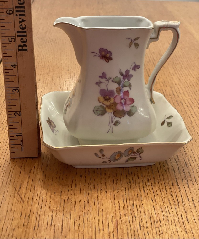 Vintage Lefton Floral Hand-Painted Pitcher and Bowl Set