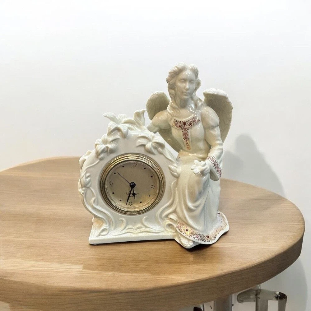 Vintage Lenox porcelain angel clock. Lenox china jewels collection. Made in Malaysia. No chips or cracks. The quartz clock works. Measures 6.5" tall x 5.5" length.