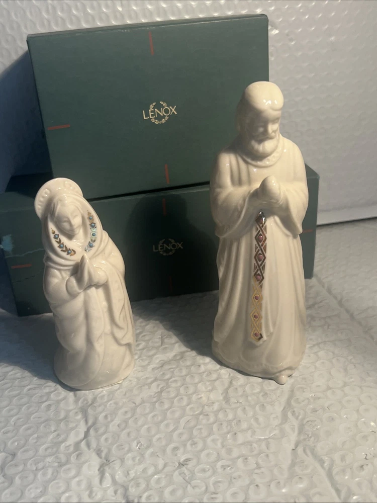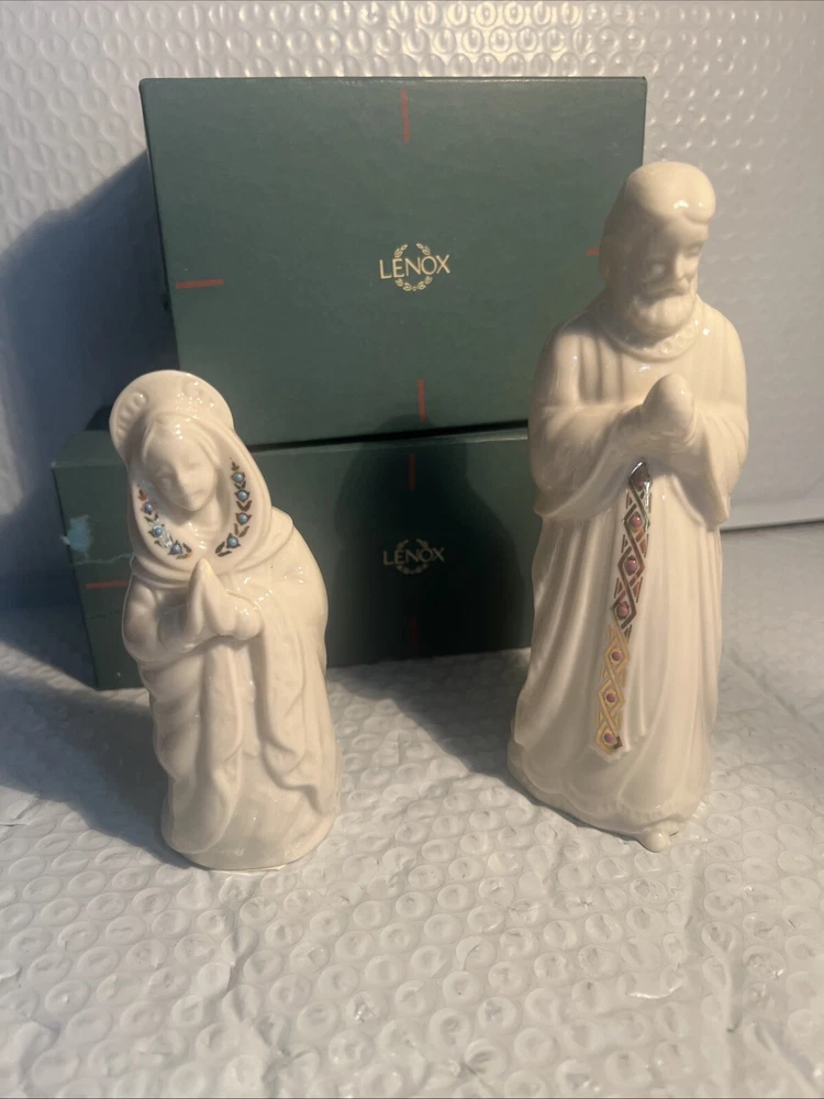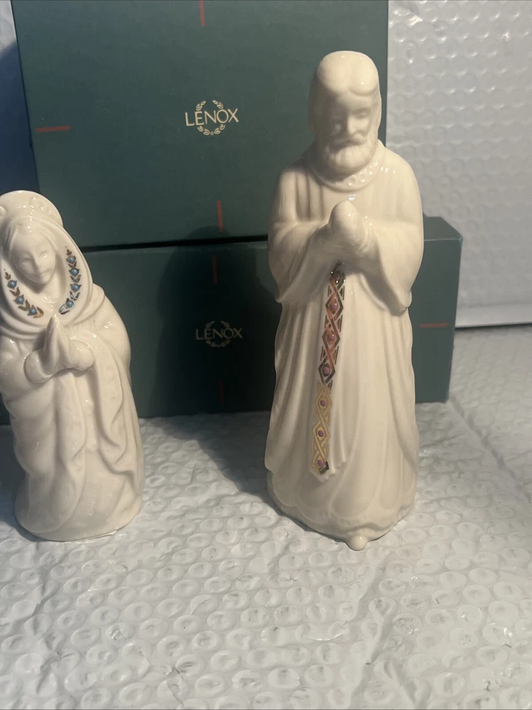 We Strive for nothing less than 5 Star FeedBack and 100% satisfied buyers! If for any reason you are not completely satisfied with your purchase before leaving feedback Please contact us with any questions or concerns. Vintage Lenox China Jewels Nativity Set Joseph & Mary 1993 Holy Family USA w Box Condition: mint w/original box condition see photos original . If there is anything wrong with the item or not as described, please contact me as soon as possible. Item is for sale as it came to us. All items pictured are included in auction. No other accessories are included in auction. please read our descriptions and check our pictures for the best item explanation before purchase. Please read the item description and look at the photos carefully before bidding We will describe the item to the best of our ability. PLEASE ASK QUESTIONS PRIOR TO BIDDING. WE WILL BE MORE THAN HAPPY TO ANSWER QUESTIONS THE BEST WE CAN Buyer assumes responsibility for all shipping and processing charges. THIS AUCTION IS FOR 1 (one) item unless otherwise specified. Bchanes27 reserves the right to end any auction at anytime! All of our items will typically ship within 1 Business day After payment is confirmed. WE ONLY ACCEPT PAYMENT THROUGH PAYPAL AND ONLY SHIP TO U.S. ADDRESSES Except Hawaii, Alaska and Puerto Rico. Be sure to check out our other items and save us as a favorite seller! Keep an eye on our auctions, you never know what we might have! We appreciate you looking at our items, Good luck and Happy Bidding