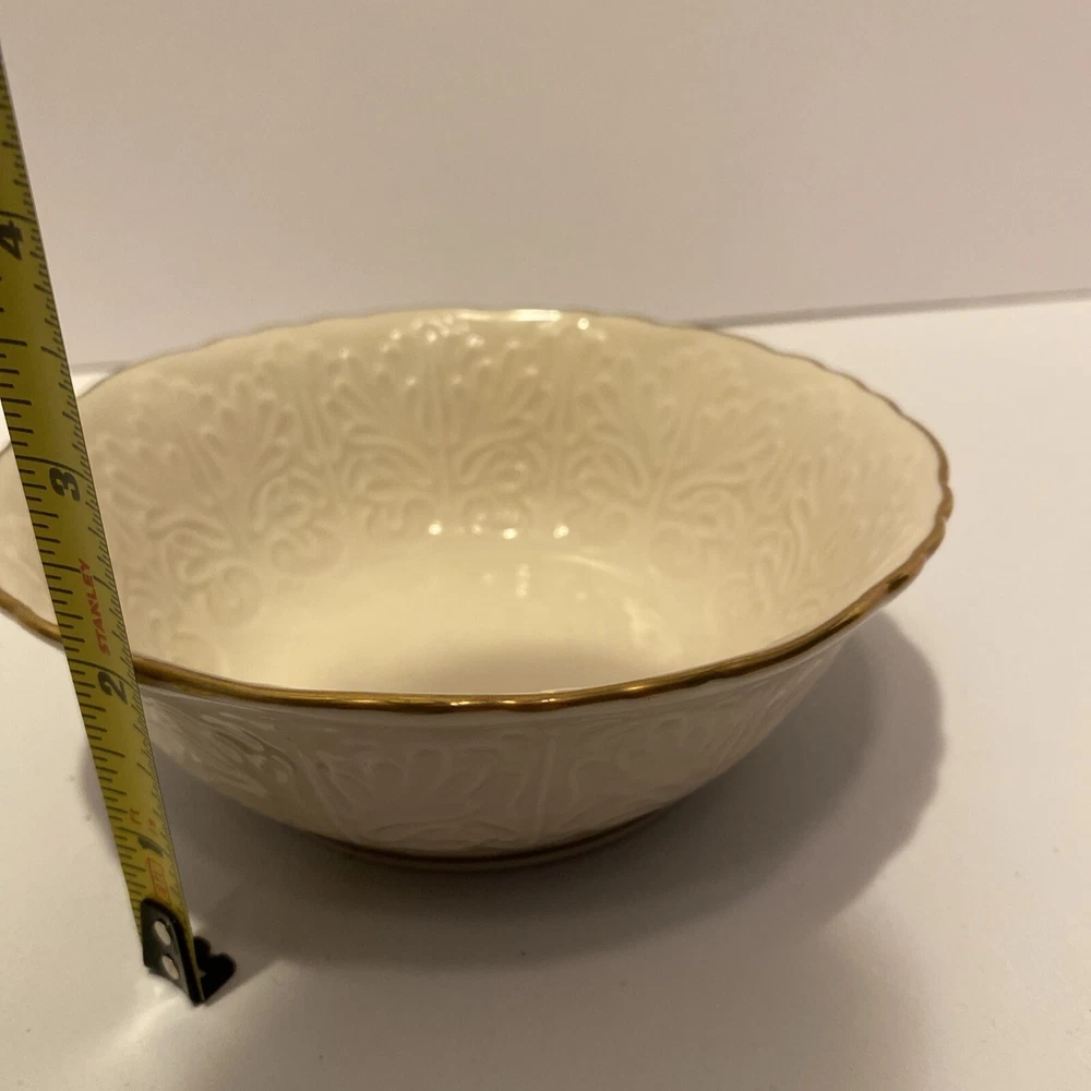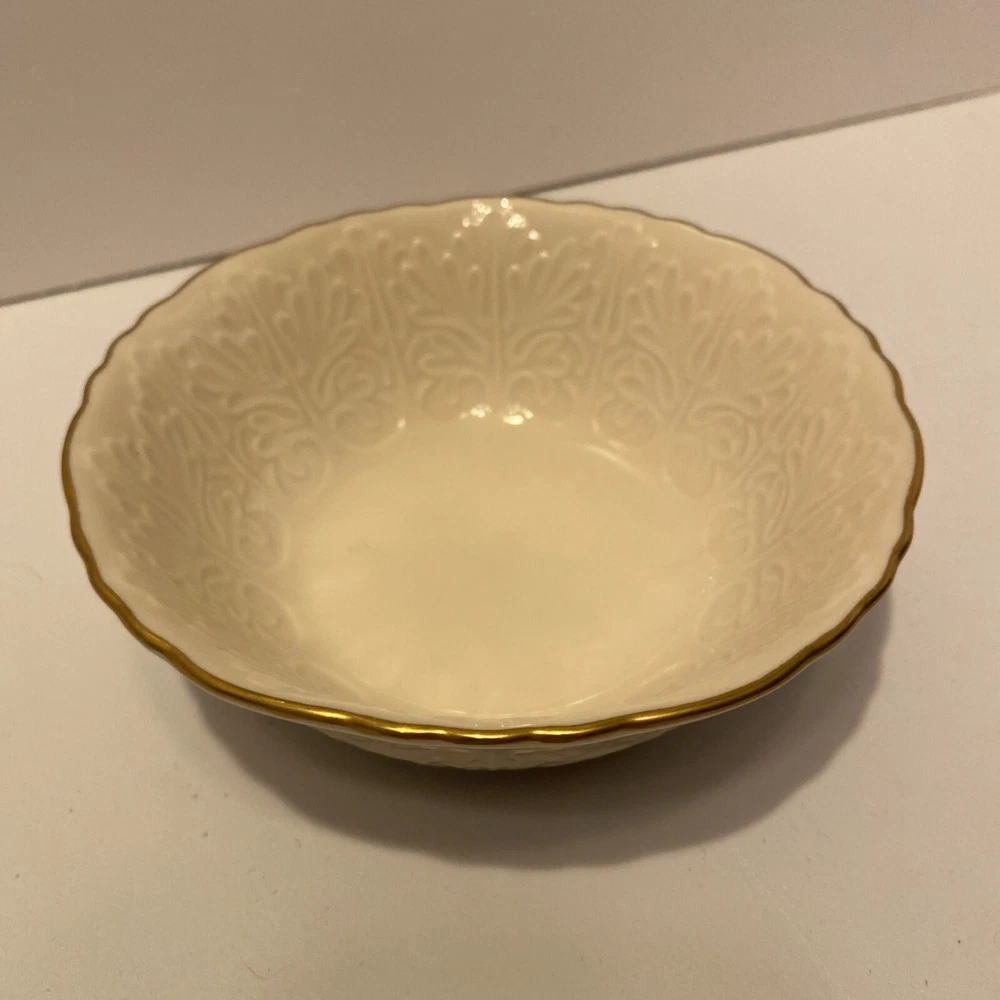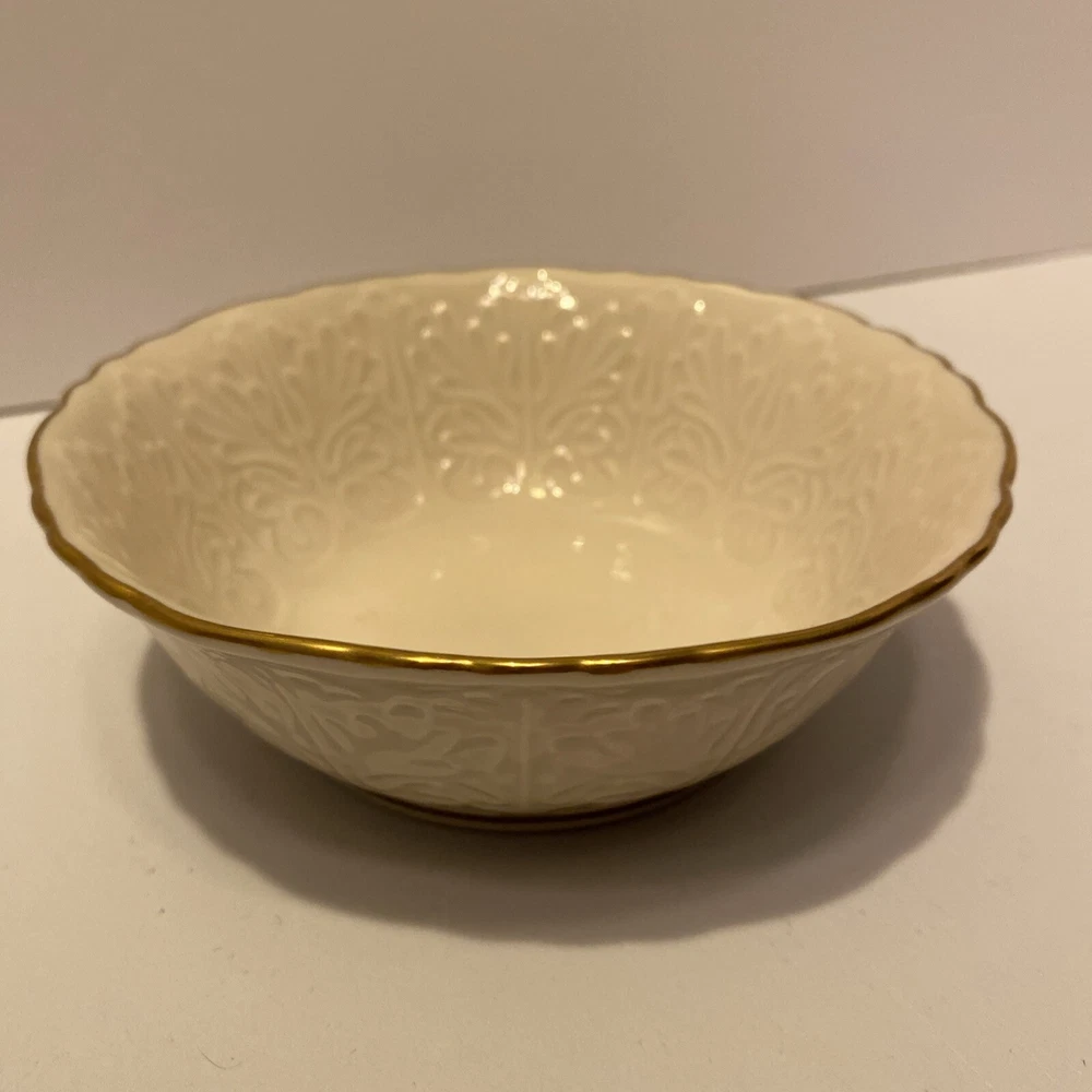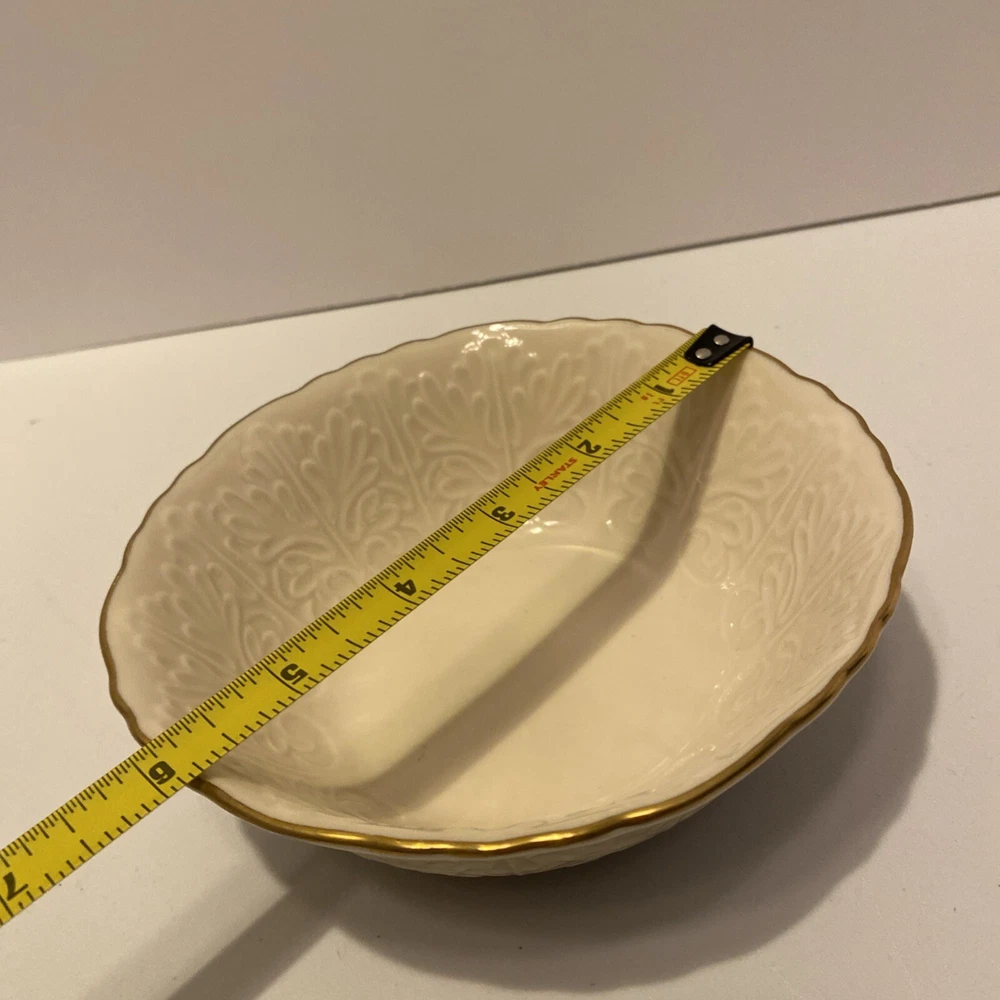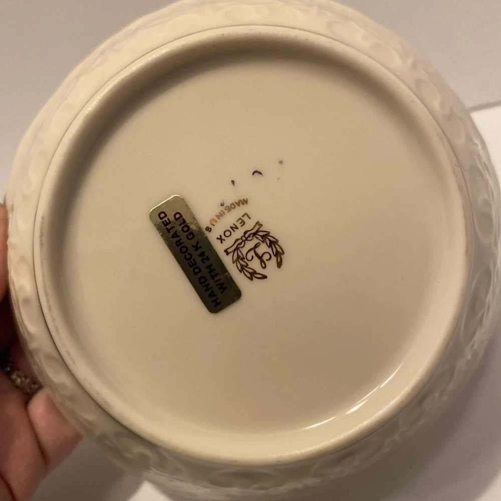 Theme:RomanticStyle:ElegantFinish:GlossyMaterial:PorcelainColor:IvoryCountry/Region of Manufacture:United StatesBrand:LenoxTime Period Manufactured:1980-1989Type:Trinket, candy or nut bowlSize:5 1/2 “ diameter 2 1/4 “ high